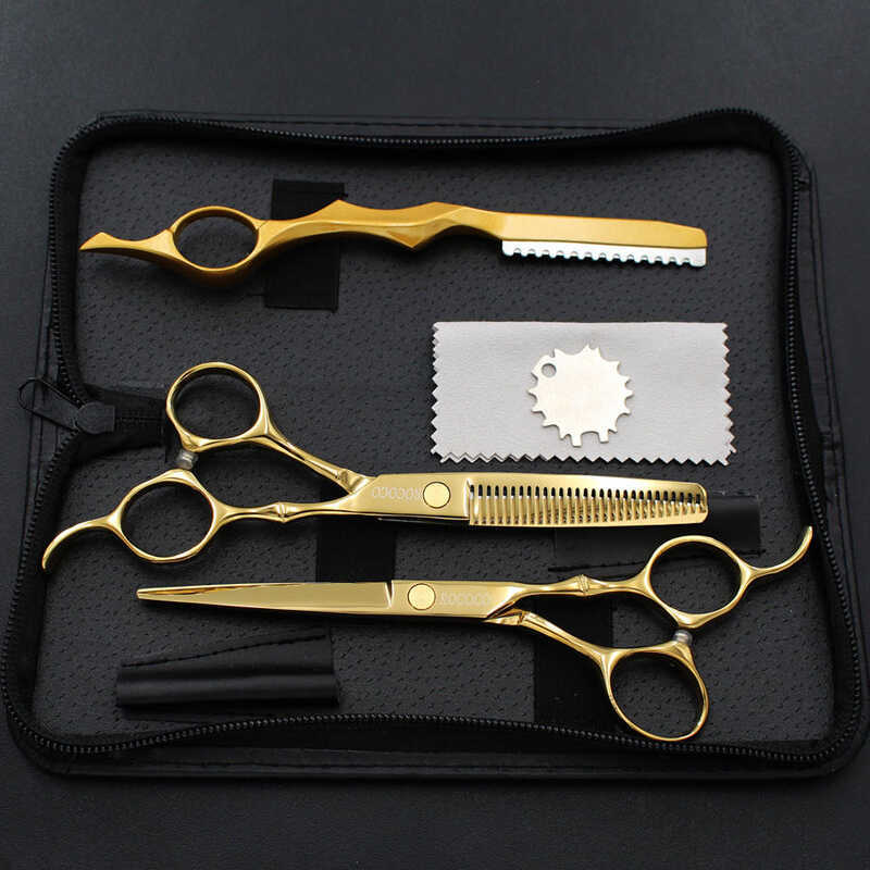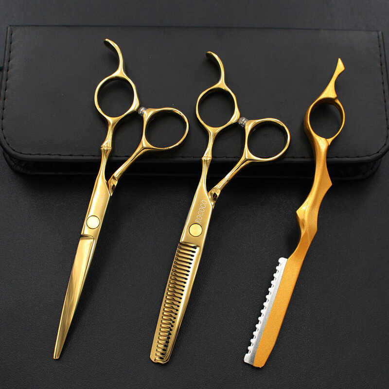 6.0 Golden Bamboo Handle Barber Scissor Color Flat Tooth Razor Set B6a