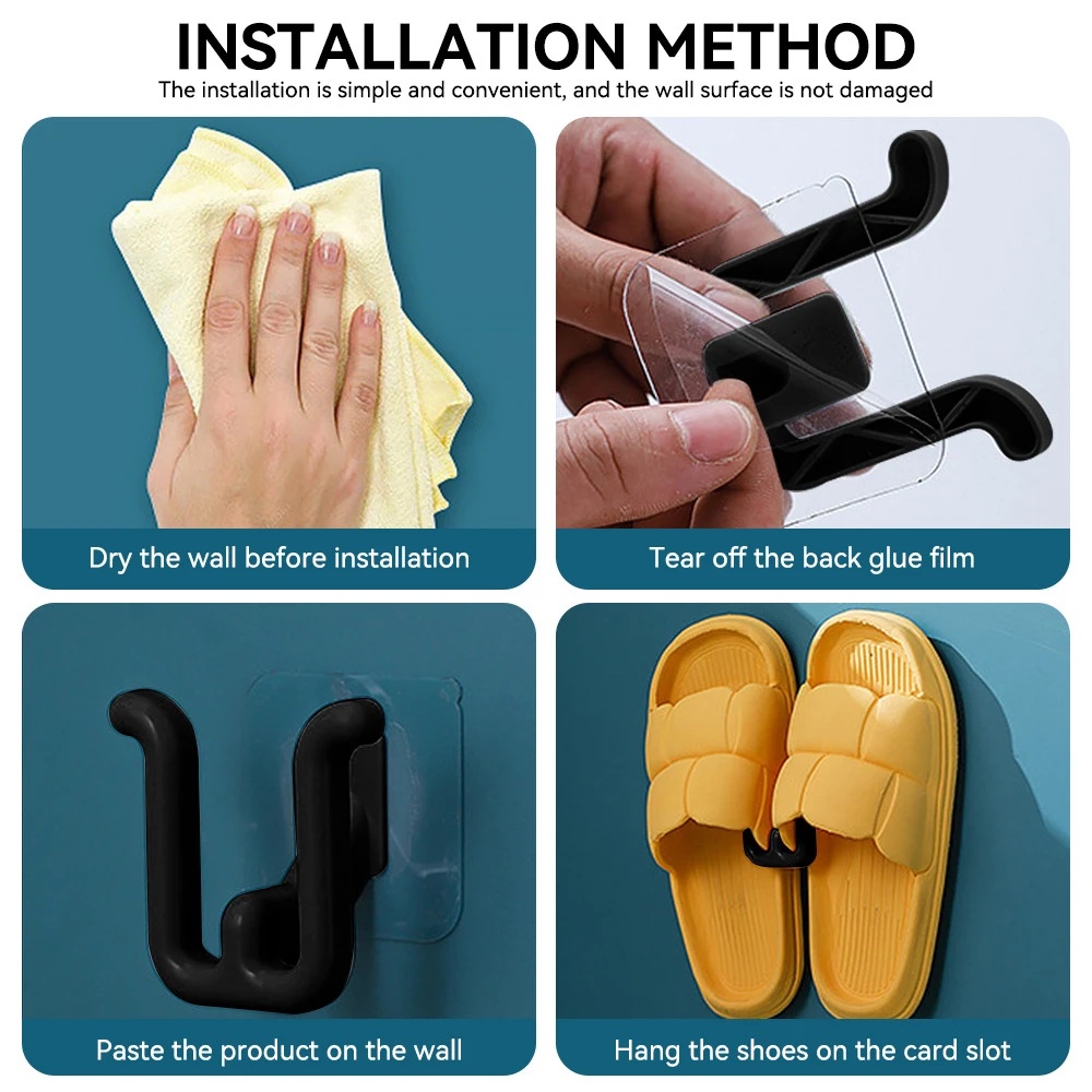 Wall-mounted Non-punched Slipper Holder / Slipper Storage Hooks / Space-saving Simple Slipper Hanger / Bathroom Toilet Drainage Rack / Bedroom Neat Storage Shoe Organizer