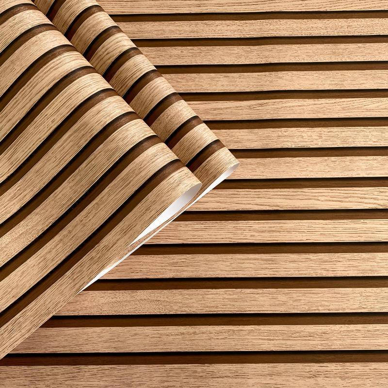 Wallpaper 10M x 45CM PVC Self Adhesive Waterproof Stripe Wood Grain Design Home Decor Wall Decor Tv