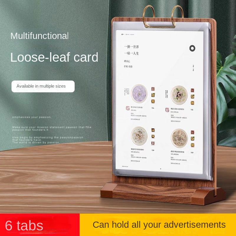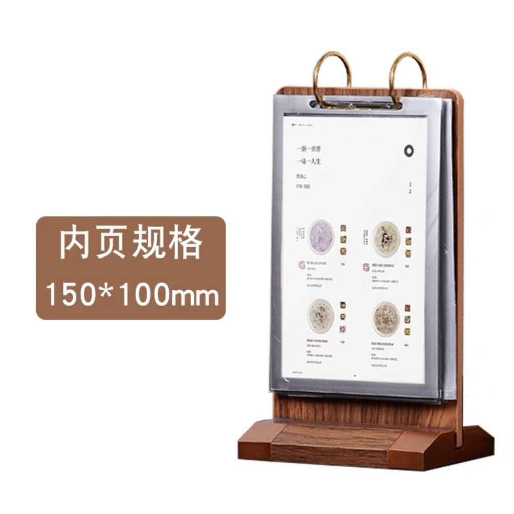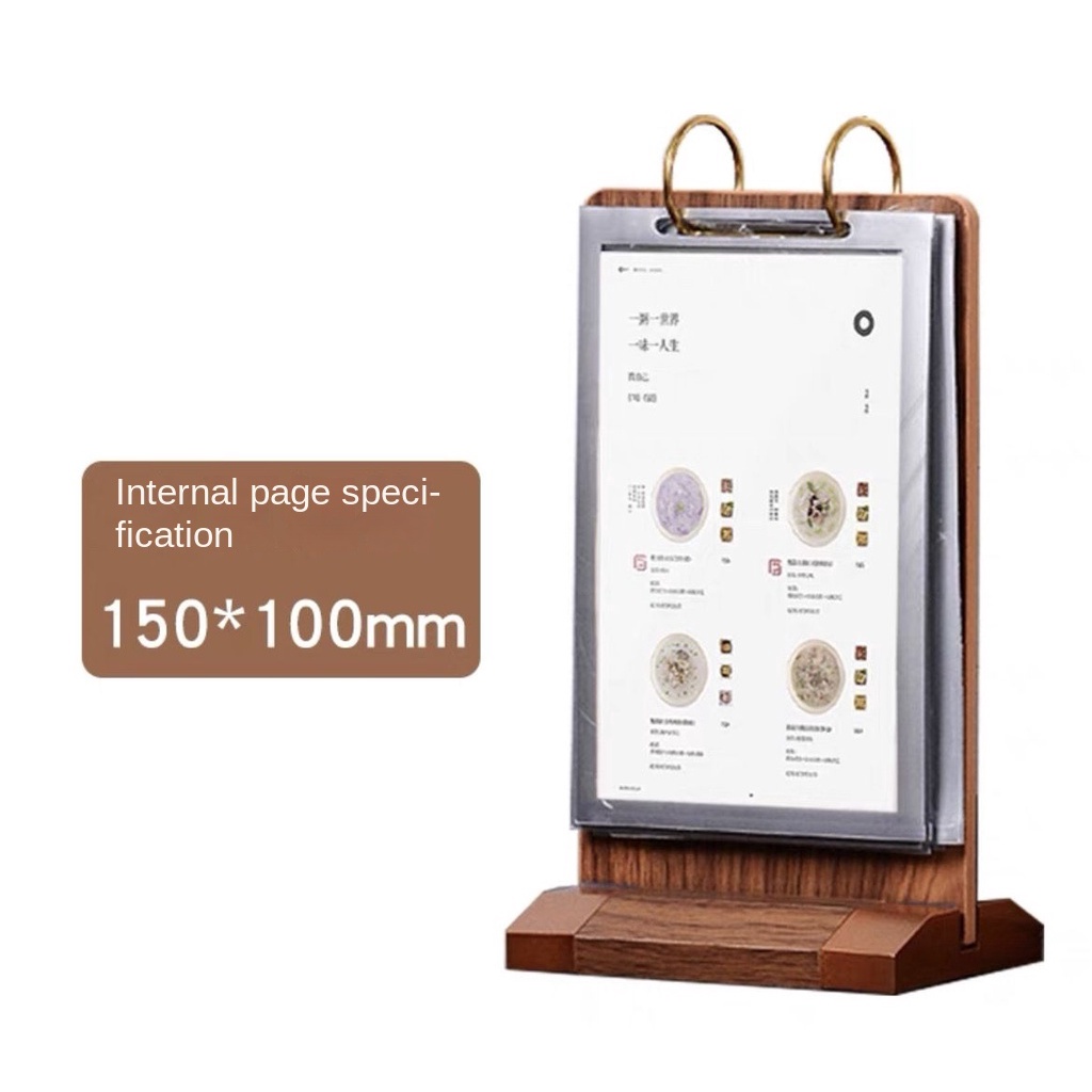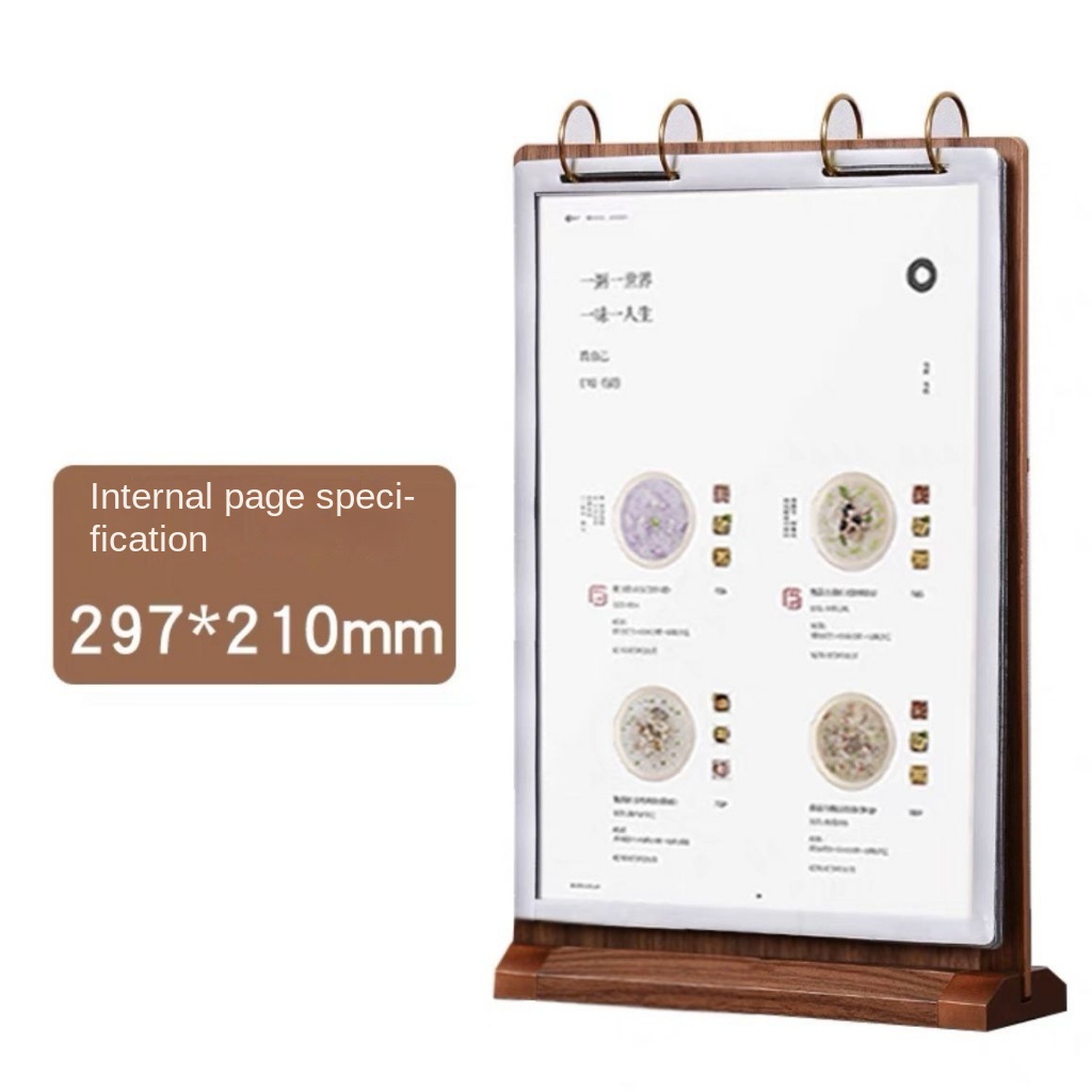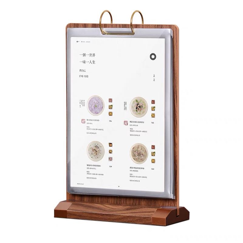 Walnut Flip Table Card pvc Menu Binder Display Stand A4 Wooden Sign