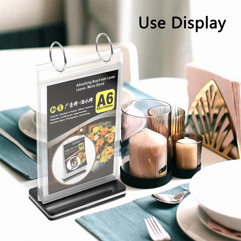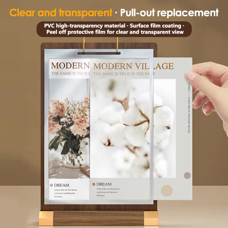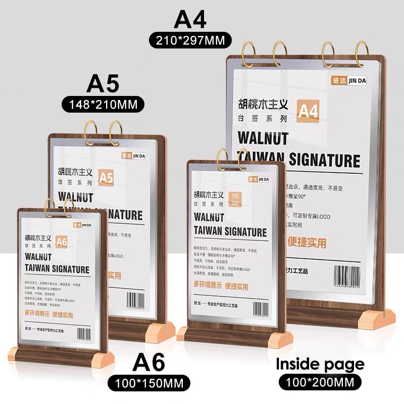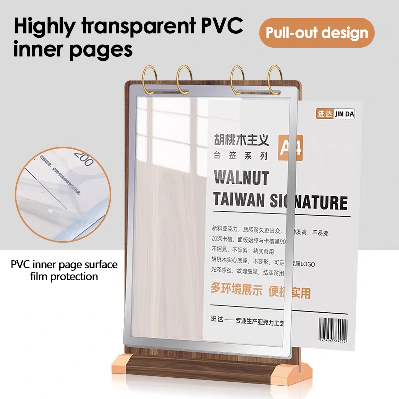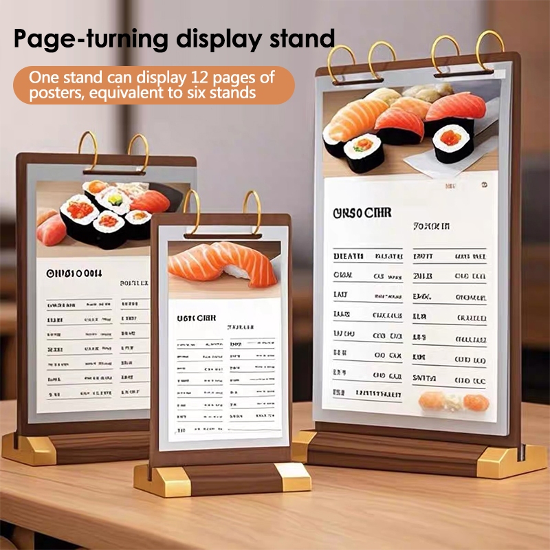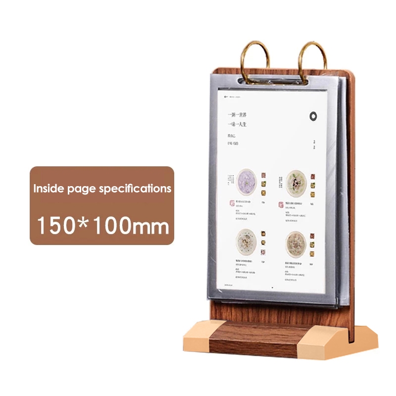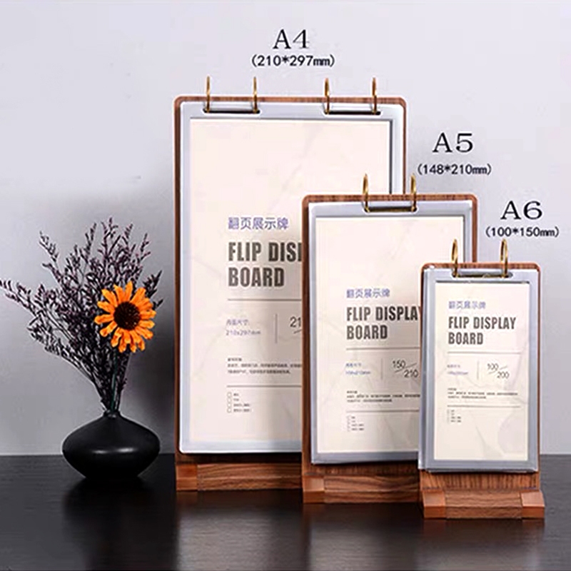 Walnut Wooden Flip Table Card PVC Menu Binder Display Stand A4/A5/A6 Sign Desktop Food Menu Page