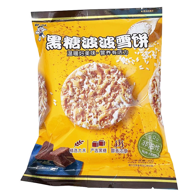 Wang Wang/Want Want Black Sugar Milk Tea Snow Rice Crackers Sweet Salty Snack - 84 grams (8 pcs)