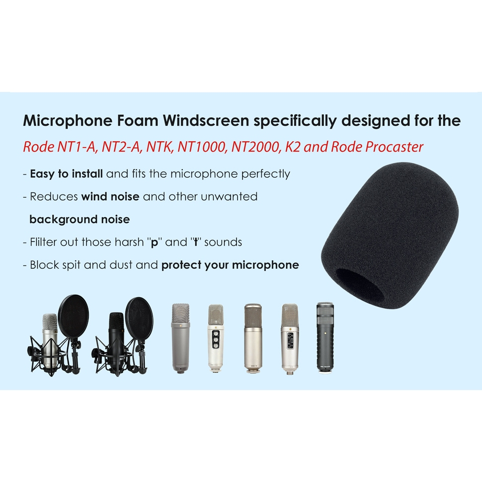 Wanjason NT1-A Microphone Pop Filter - Mic Foam Windscreen Cover for Rode NT1-A, NT2-A, NTK, NT1000, NT2000, K2 and Rode Podcaster Microphones
