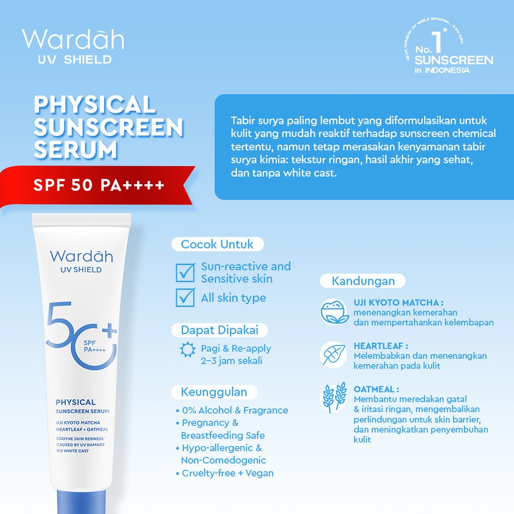 WARDAH UV Shield Physical Sunscreen Serum SPF 50+ PA++++ 30 ML]