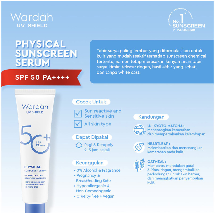 Wardah UV Shield Physical Sunscreen Serum SPF 50+ PA++++ - 30mL | Face Sunscreen