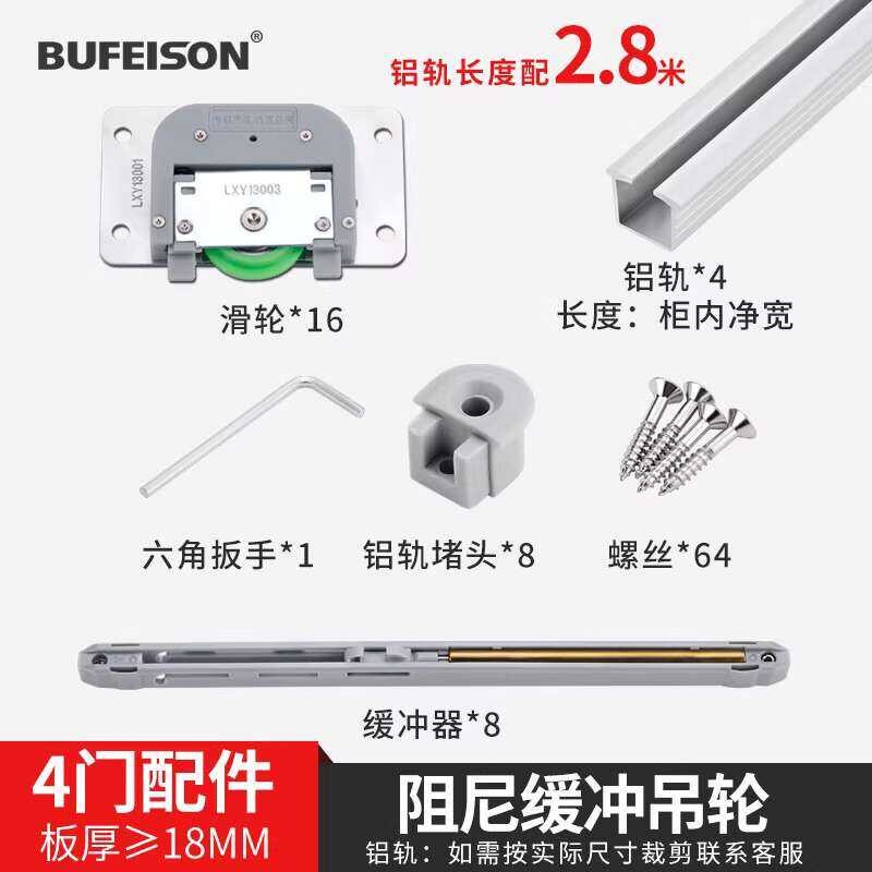 Wardrobe sliding door track with embedded upper and lower tracks, TV cabinet sliding door with bidir