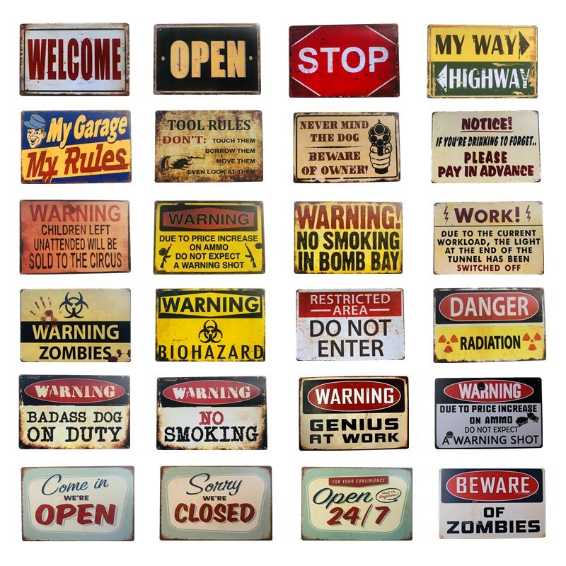 Warning No Smoking Do Not Enter Warning Signs Shabby Rusted Vintage Metal Plaques Garage Bar Workshop Vintage Wall Waring Plates