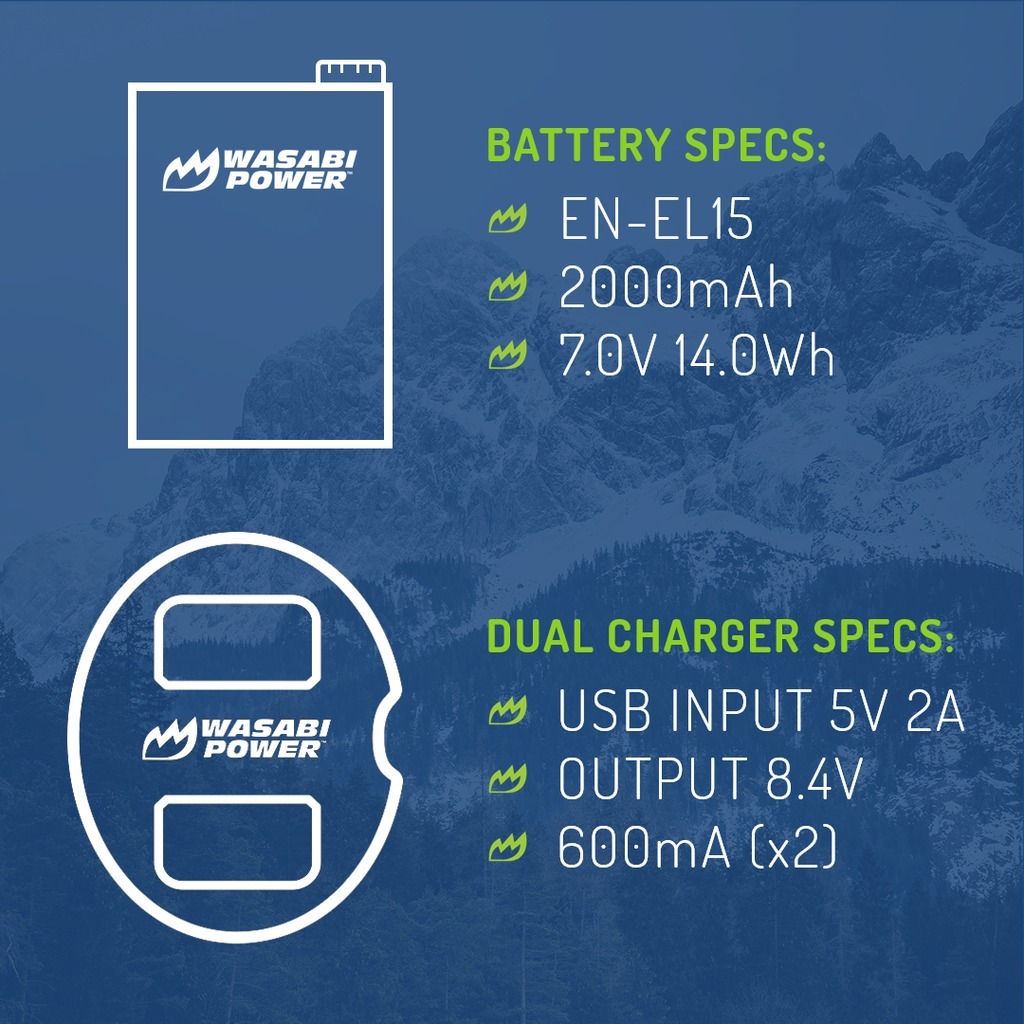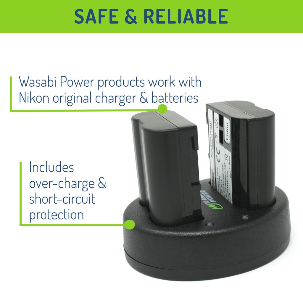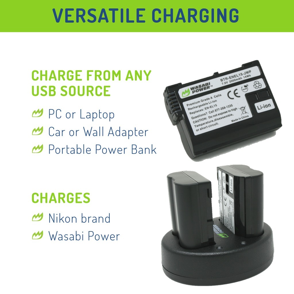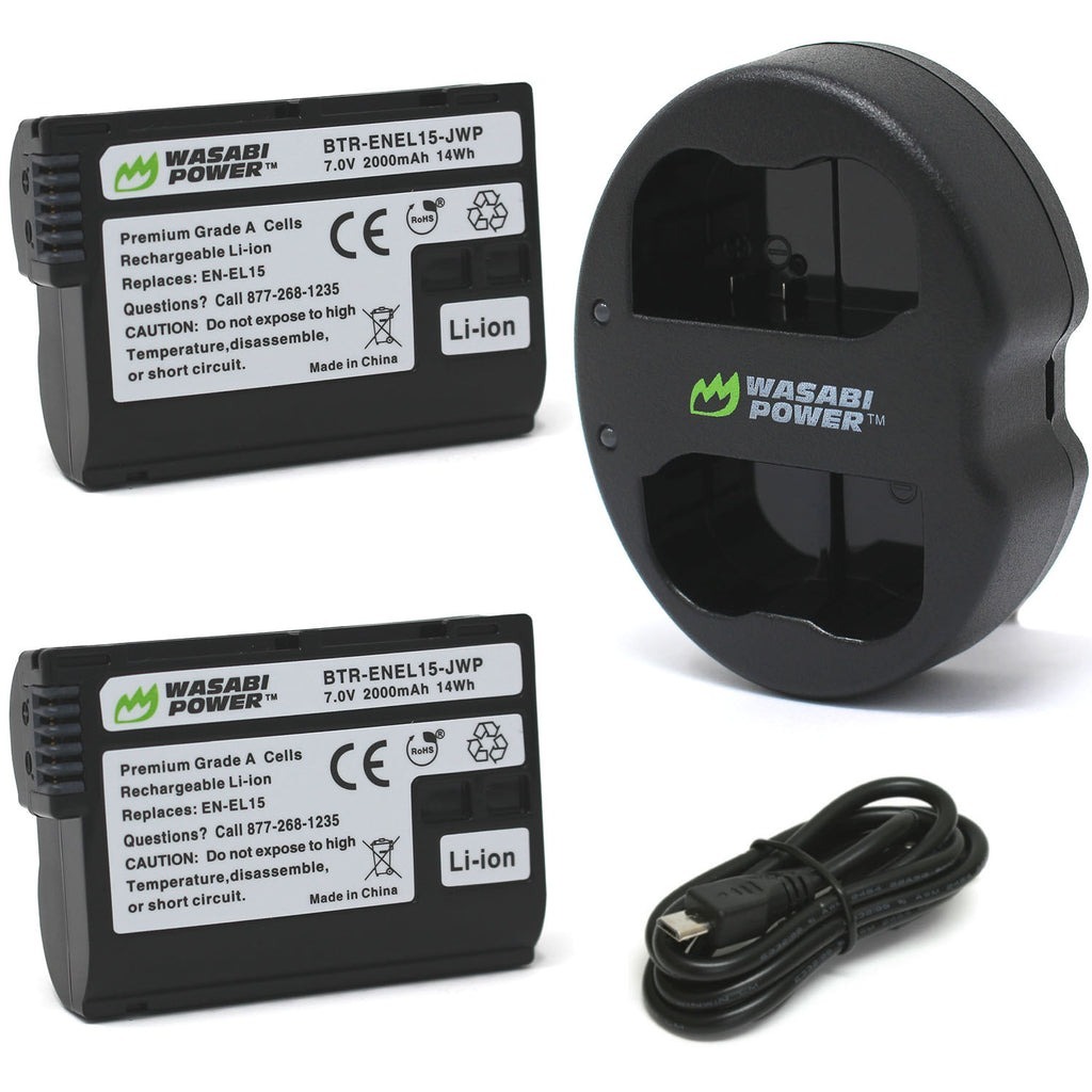 Wasabi Power EN-EL15 2000mAh 2pcs Battery & Dual USB Charger Kit for Nikon DSLR Mirrorless Camera