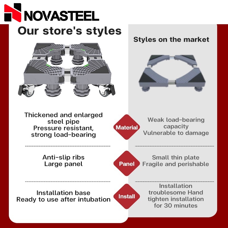 Washing Machine Adjustable Stand Refrigerator Base Heavy Duty Stainless Steel Foot Wheel Wheels