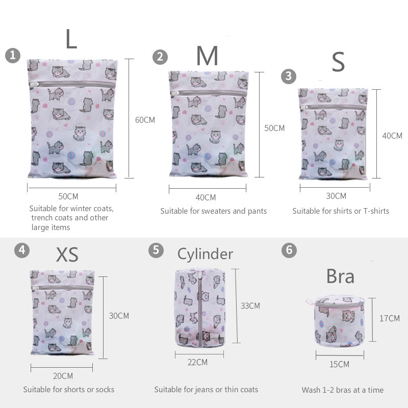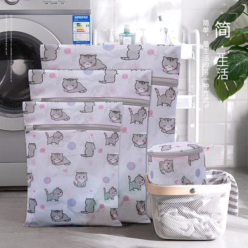 Washing Machine Laundry Bag Printed Cat Cute Laundry Net Fine Mesh Bra Travel Wash Bag 30x40cm