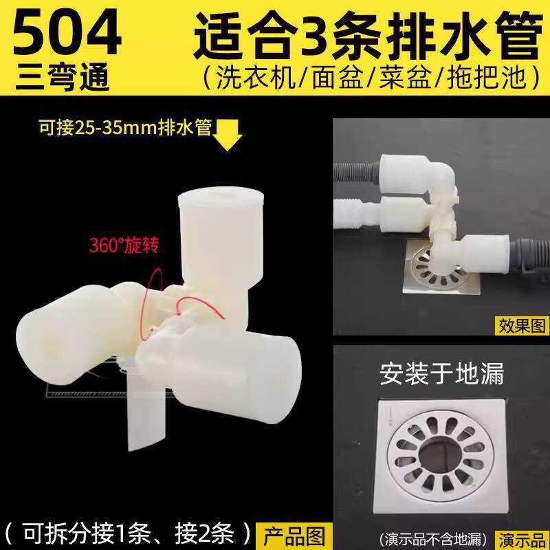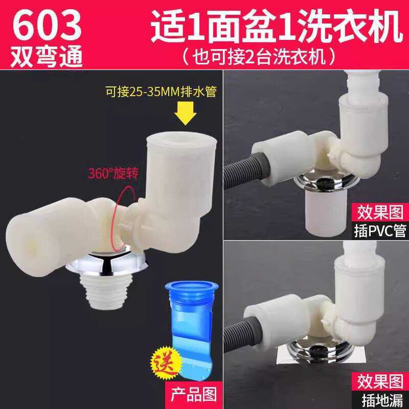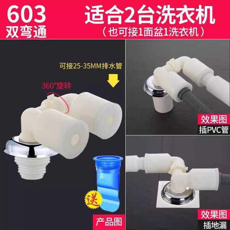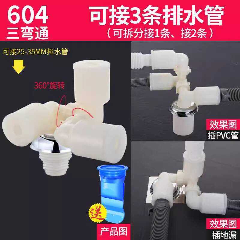 Washing Machine Pipe Floor Drain Special Connector Sewer Three-Head Double-Way Outlet Two-in-One