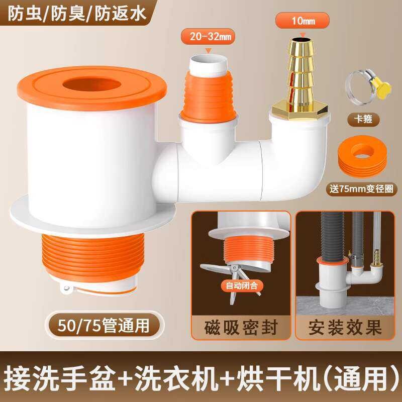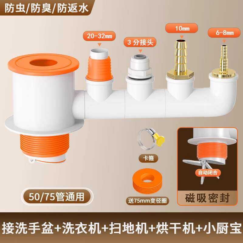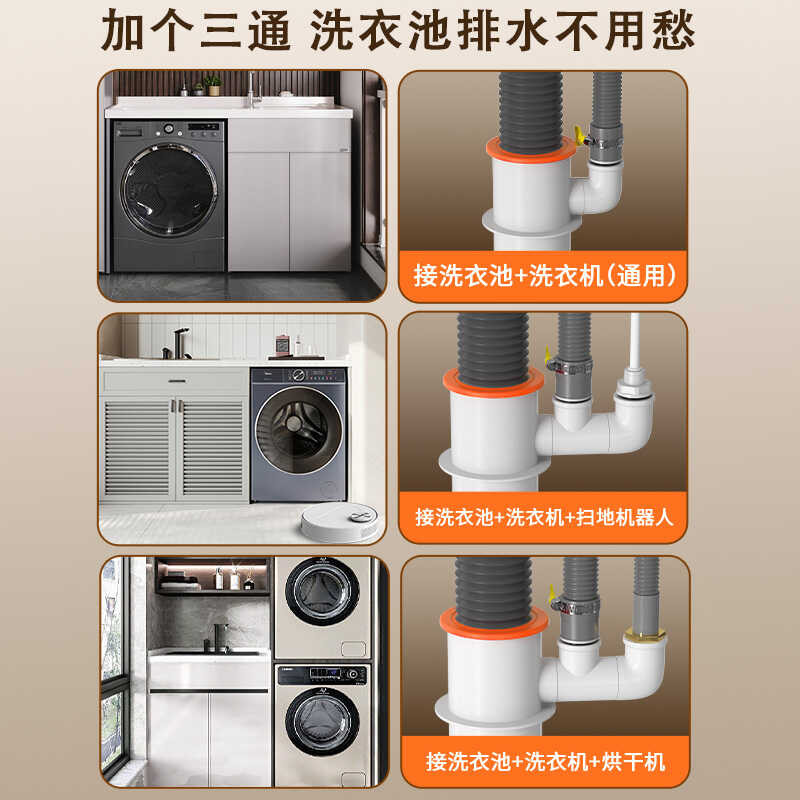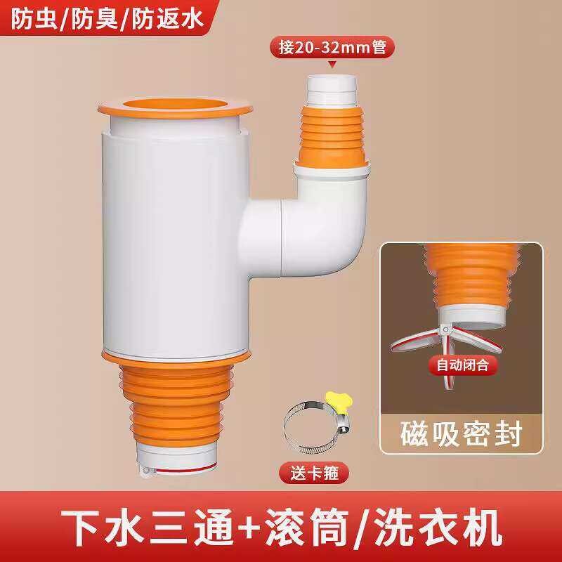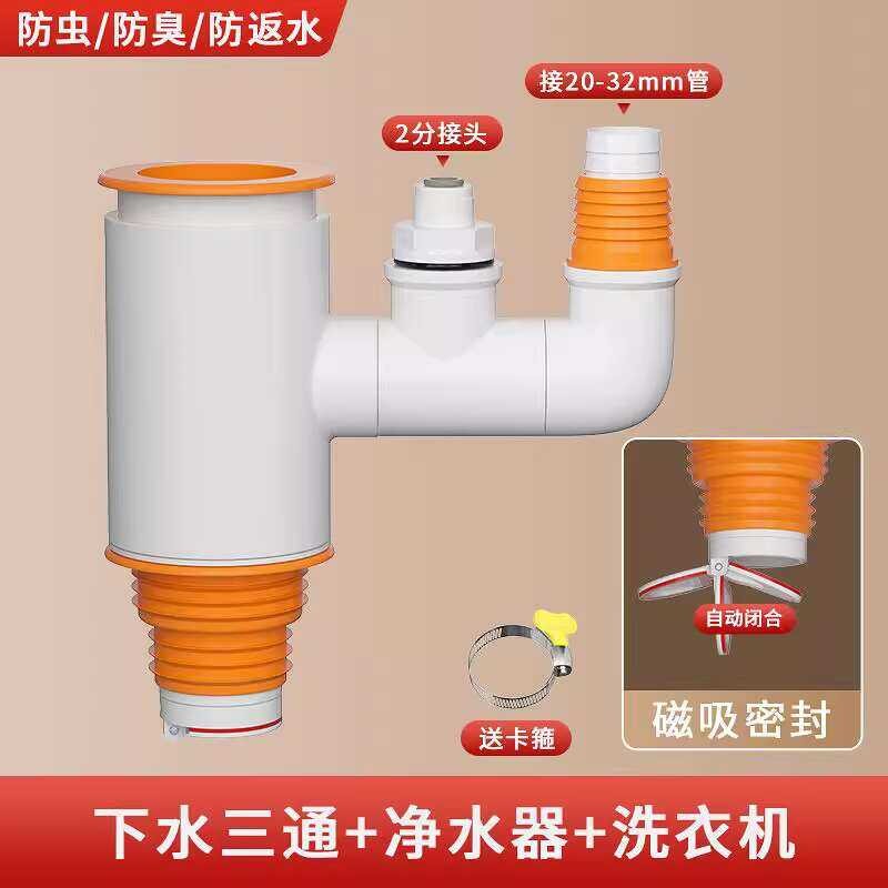 Washing Machine Tee Splitter Dryer Drain Pipe Robot Vacuum Cleaner Two-in-One Check Valve Connector