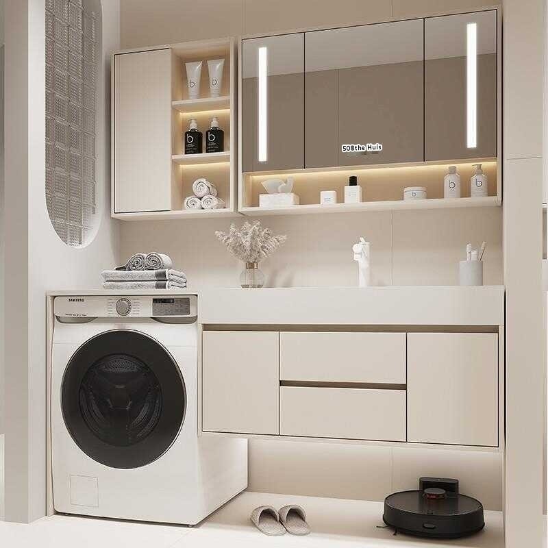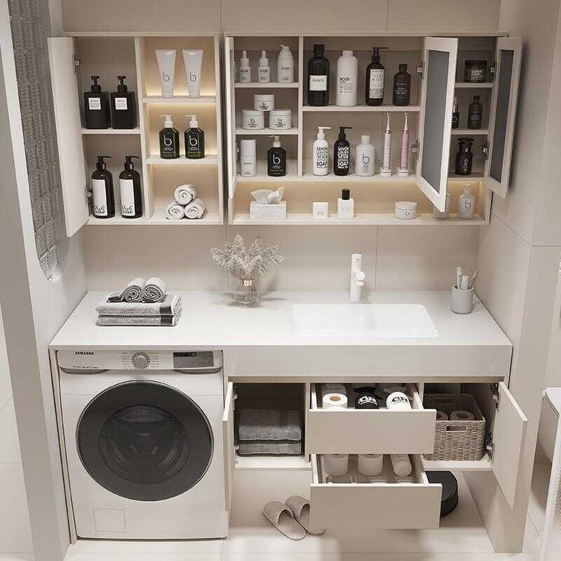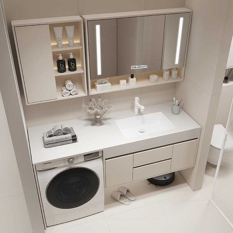 Washing machine balcony rock slab ceramic seamless integrated basin, milk oil wind bathroo