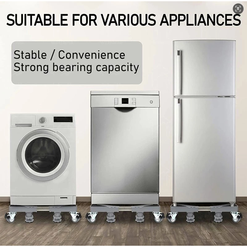 Washing machine frame with wheels, refrigerator frame with adjustable wheel load base