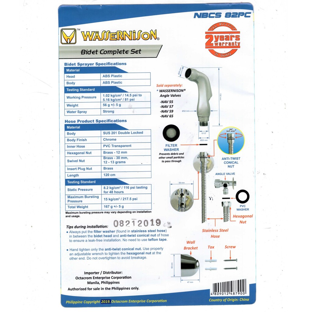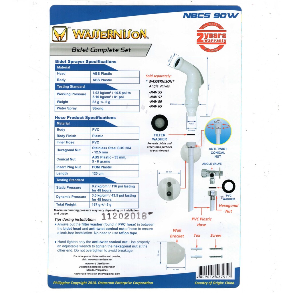 Wassernison Toilet Bidet Complete Set (Stainless/PVC Plastic)