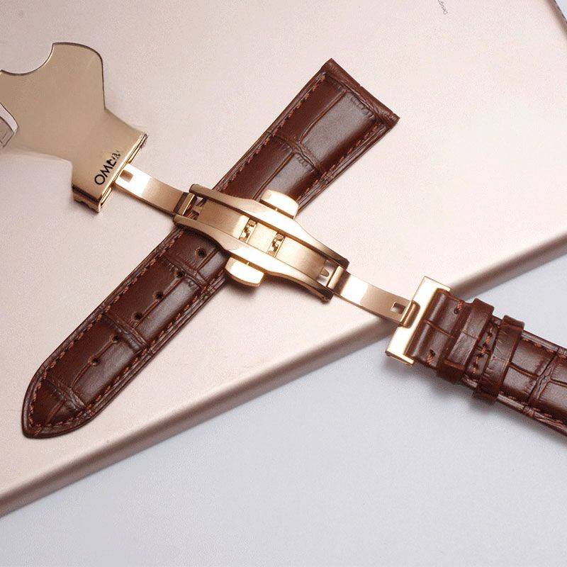 Watch Bands 20mm Genuine Leather Watch Strap for Omega X Swatch Fashion Bracelet Waterproof Sports Strap Butterfly Buckle Gold Rose Gold