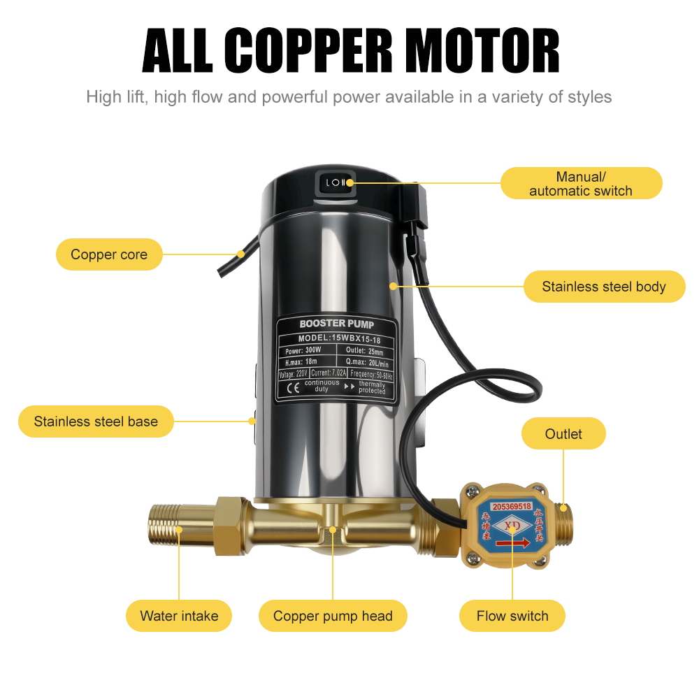 Water Booster Pump 220V 60HZ 220W/260W/320W Automatic Home Shower Washing Machine Water Booste Pump