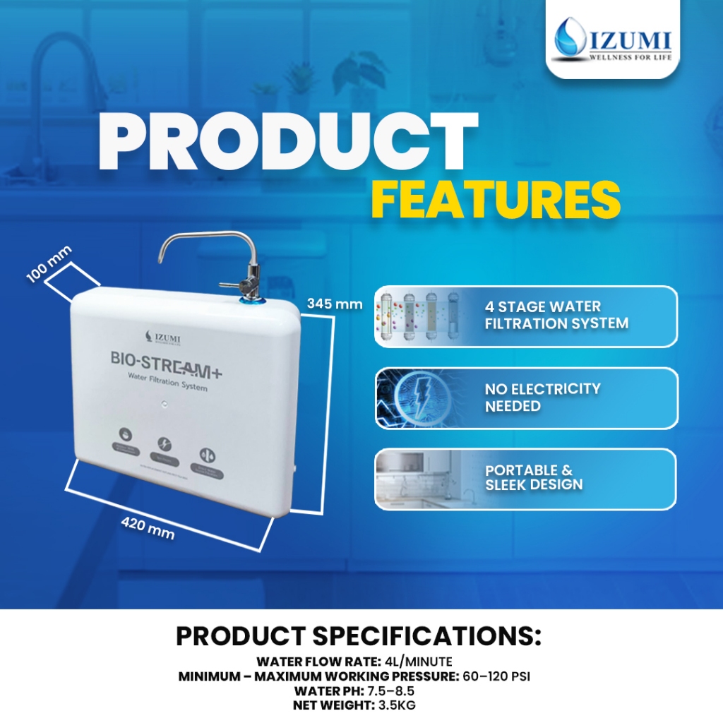 Water Filter / Water Purifier - Izumi non-electric 4 stages filtration system