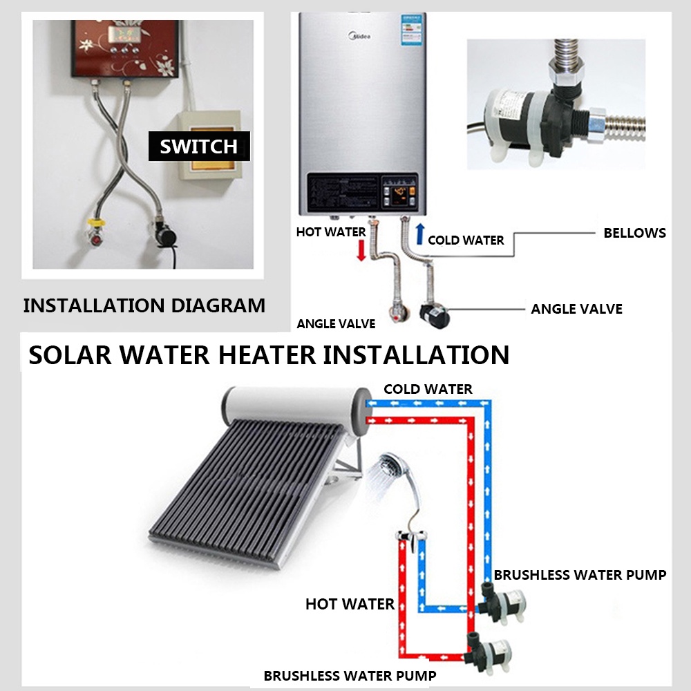 Water Heater Shower Floor Heating Booster Pump IP68 DC 12V 24V US Plug Silent 4 Points Threaded