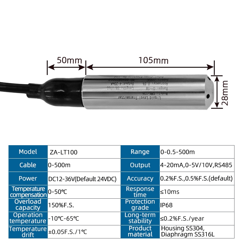 Water Level Control System Level Pressure 1-500m Range Liquid Level sensor 4-20mA 5V 10V RS485