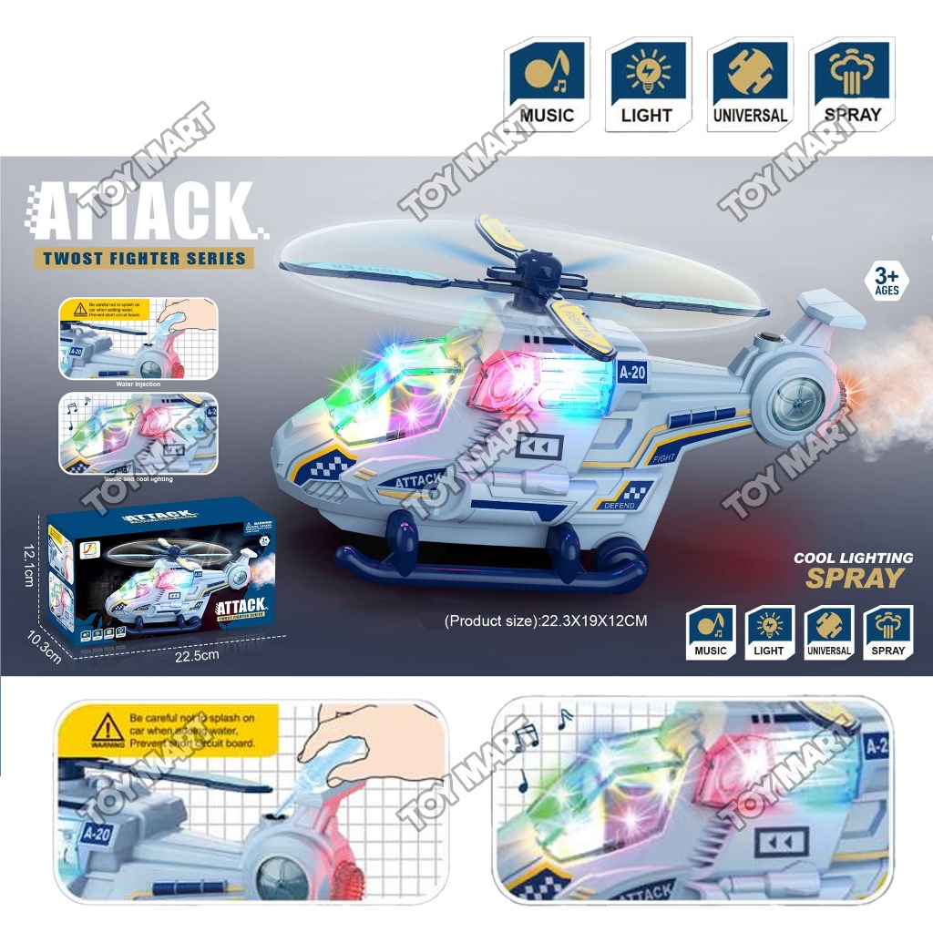 Water Spray Electric Helicopter Light Music Bump and Go Vehicle Kids Vehicle Popular Toy