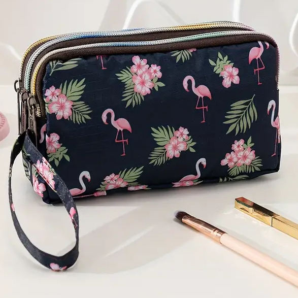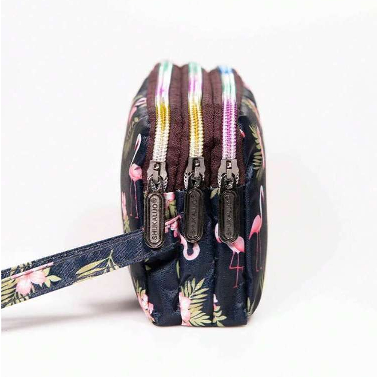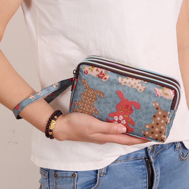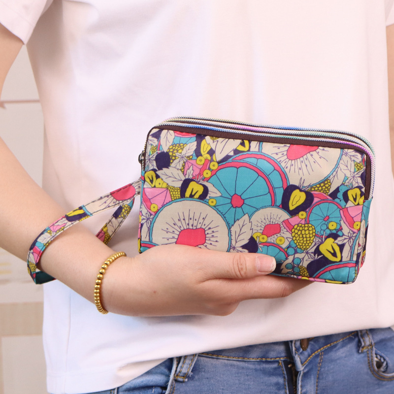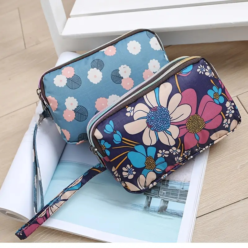 Waterproof 3 Zipper Wallet, Women's Nylon Coin Purse With Wristlet Small Storage Bag For Phone & Key