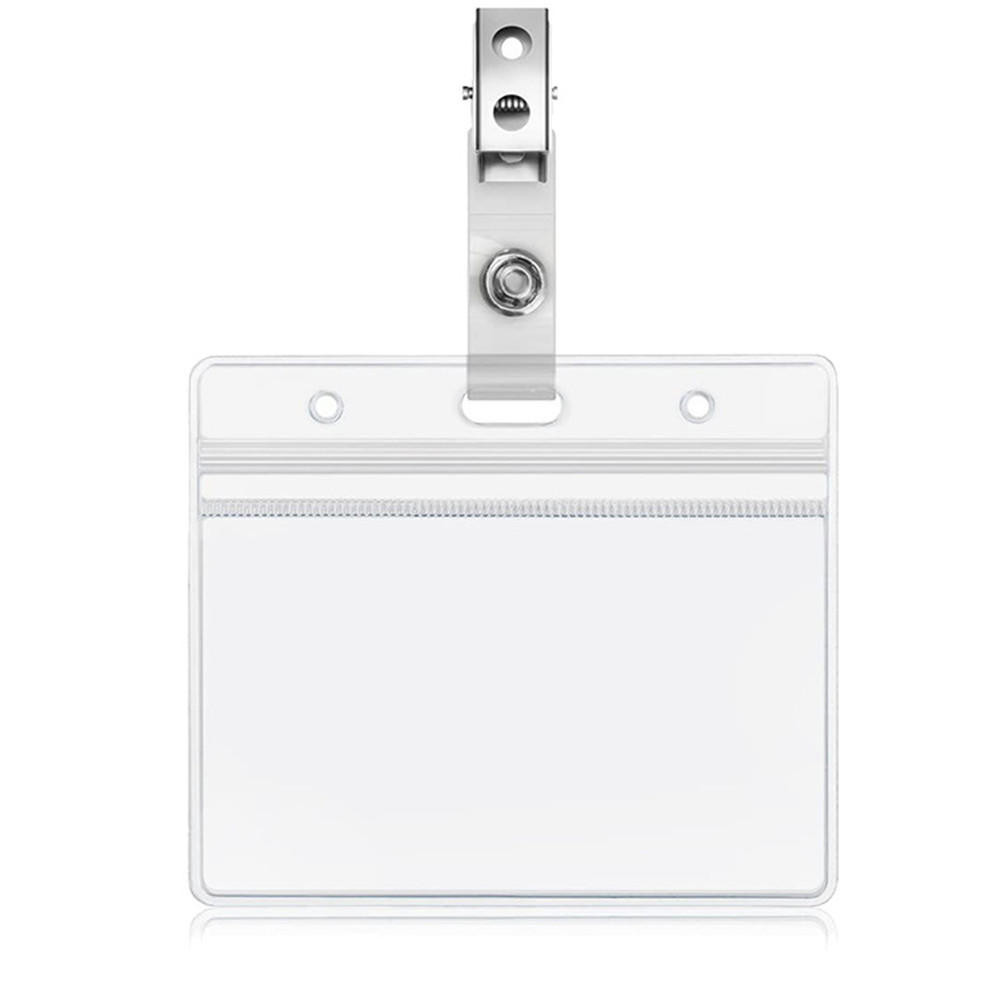 Waterproof Horizontal ID Badge Holder Horizontal Clear PVC Name Holder Tags with Badge Clip Straps