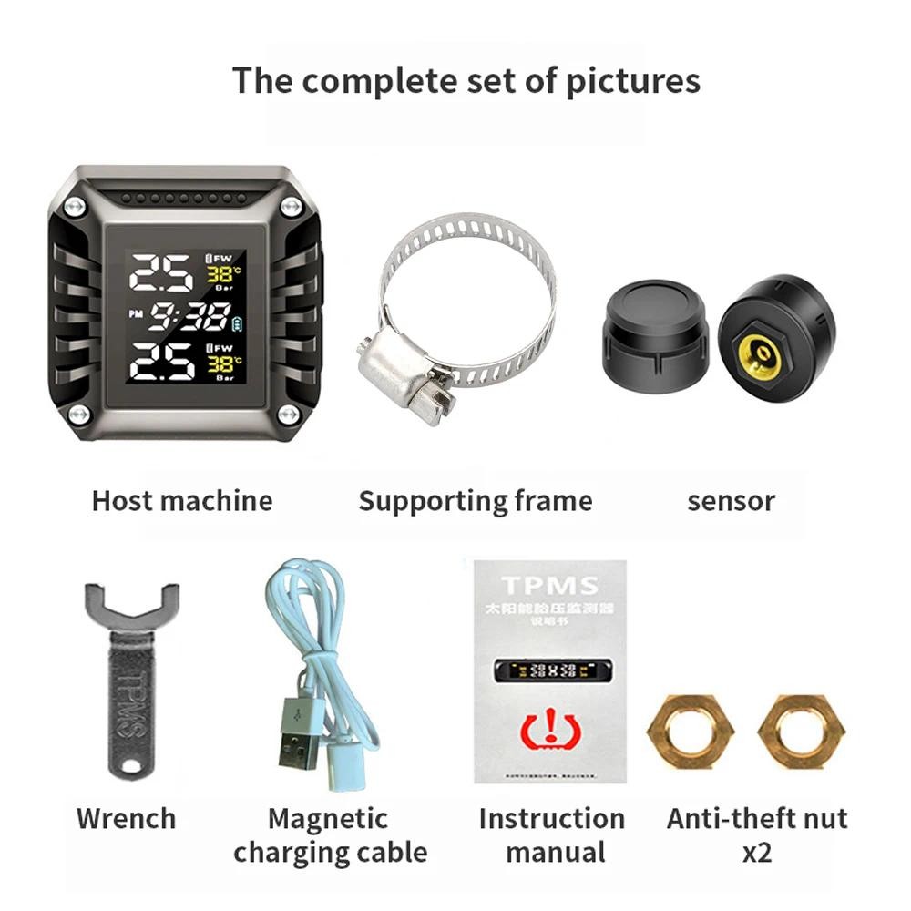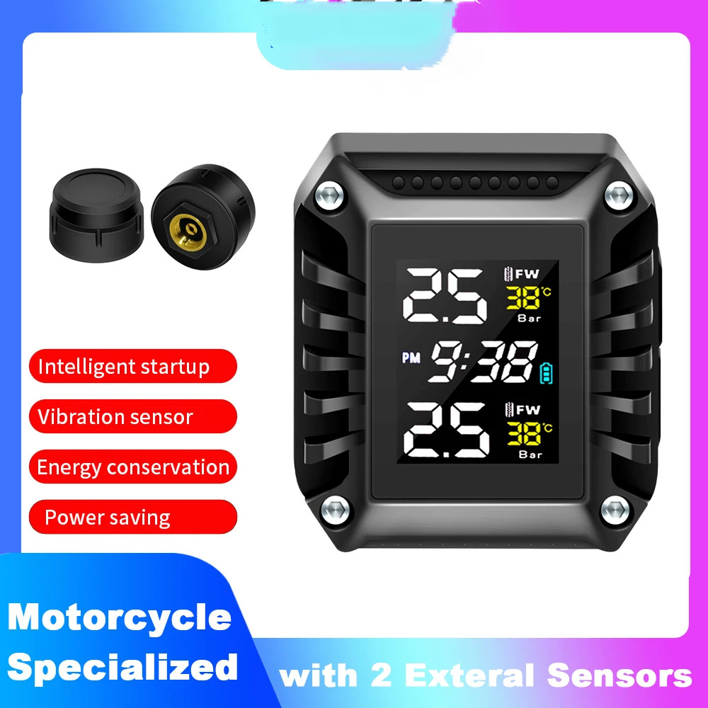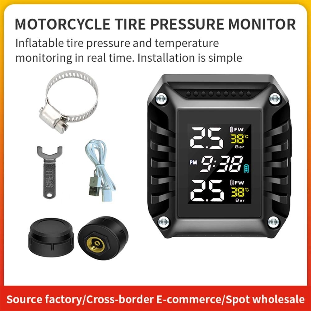Waterproof Motorcycle TPMS Tire Pressure Monitoring System with Exteral Sensors Motorcycle Tire Pressure Monitoring Alarm System