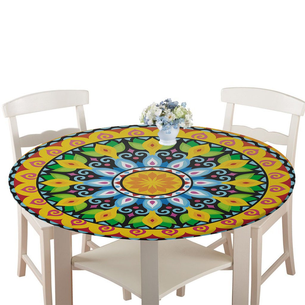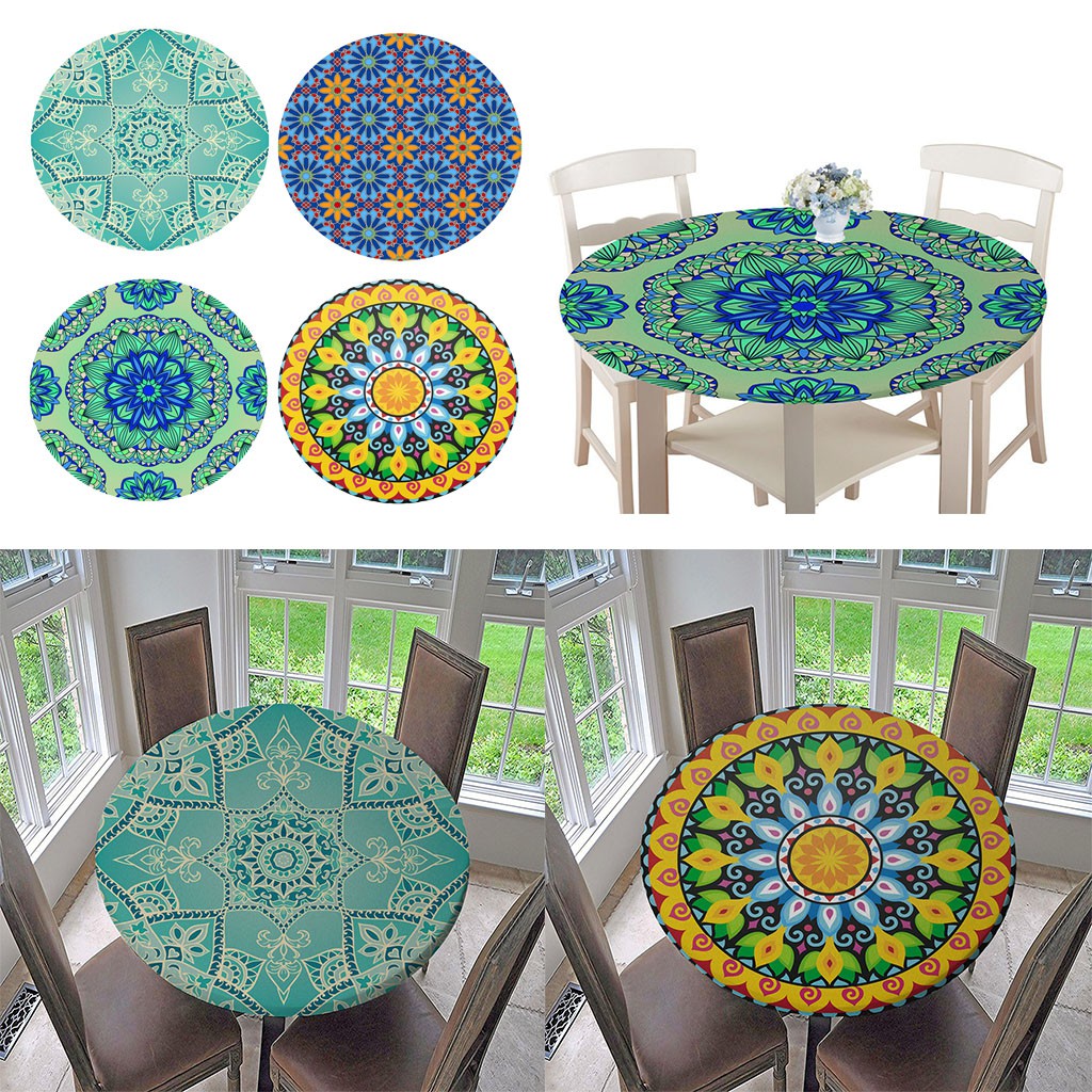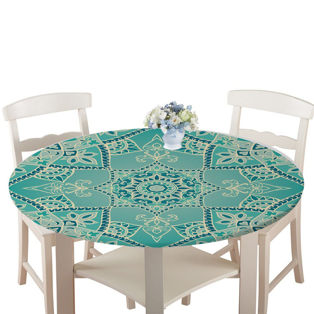 Waterproof Non-slip Round Table Cover Elastic Edged Table Cloth