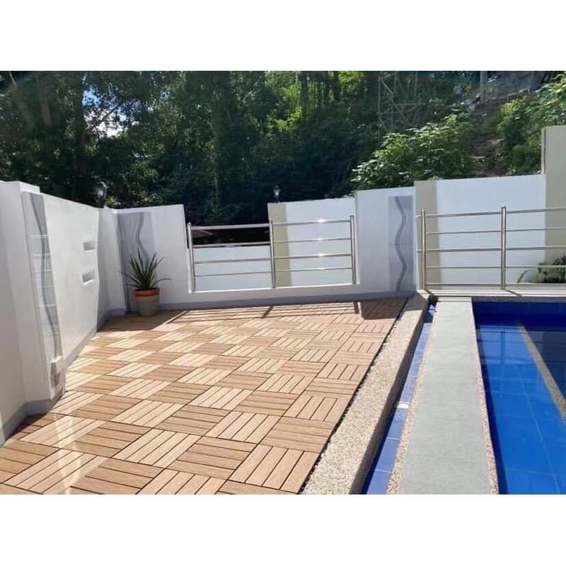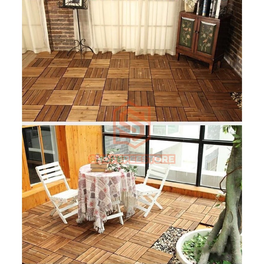 Waterproof Outdoor Solid Wood Decking Flooring Tiles Anti Skid for Garden Balcony Terrace