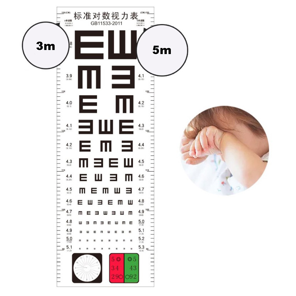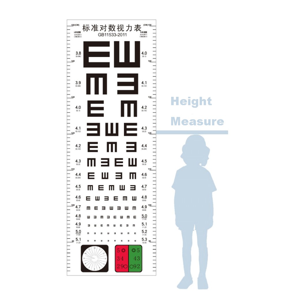 Waterproof PVC Snellen Eye Chart with Height Measure Ruler Wall Sticker for Eye Visual Exam Testing Height Measurement