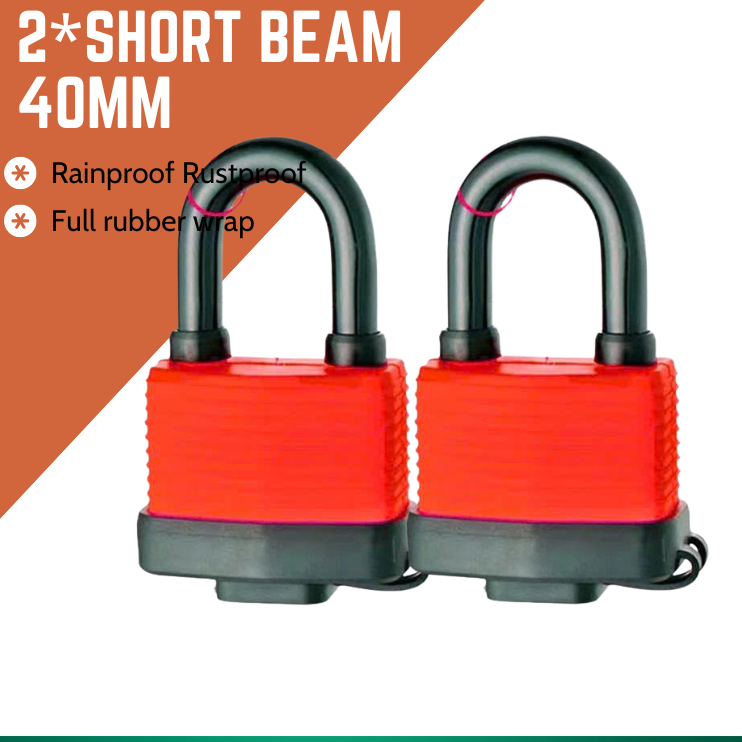 Waterproof Padlock Heavy Duty Multilayer Steel Padlock with Key, 40mm Long Short Padlock with Key