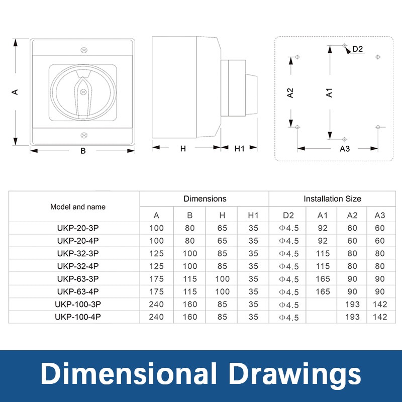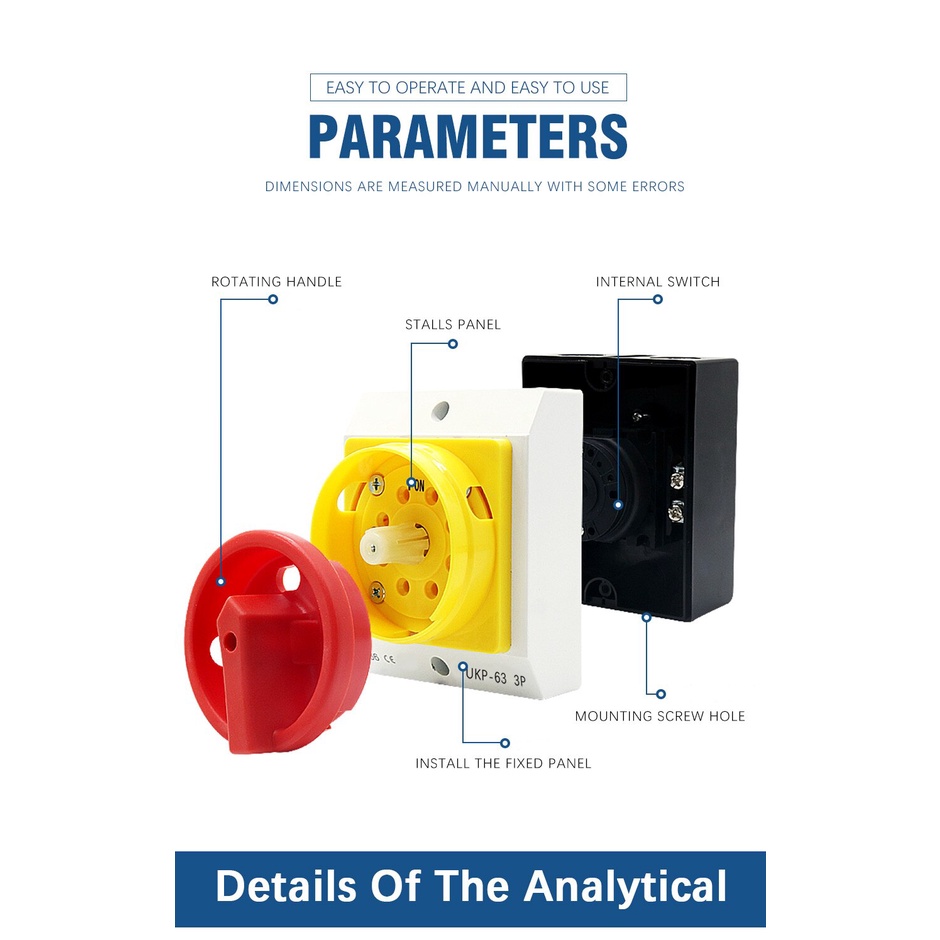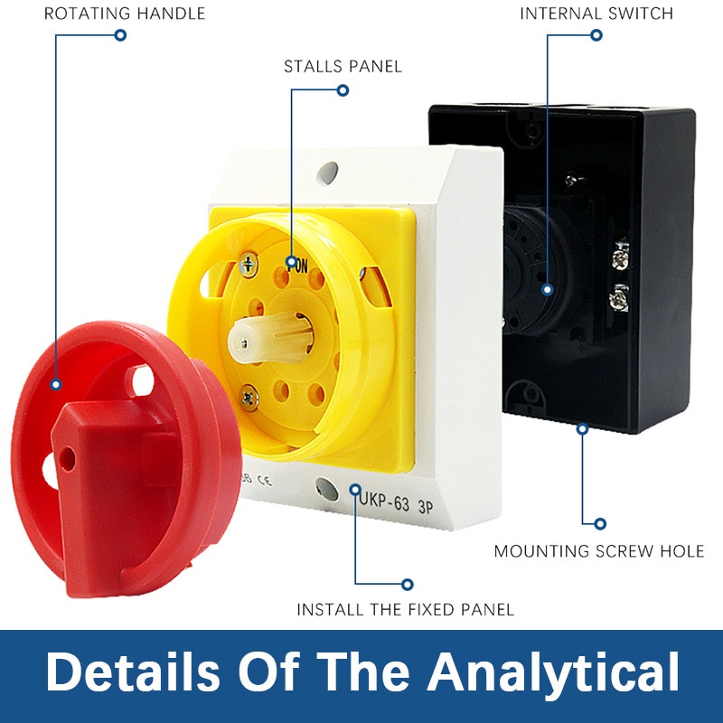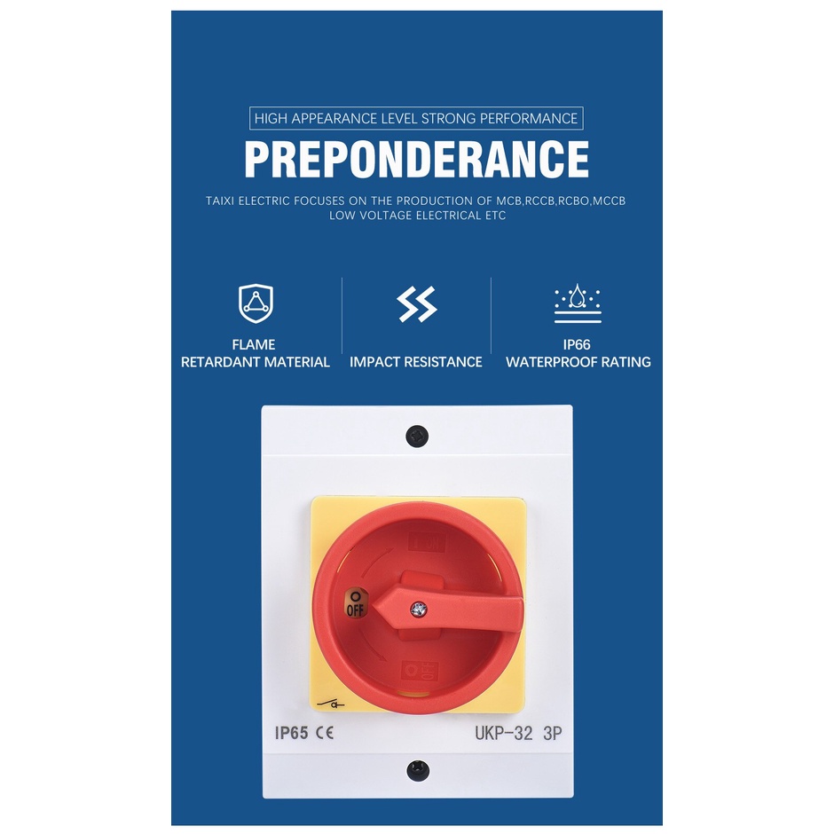 Waterproof Padlock Rotary Electrical Isolator Switch AC440V IP65 20A 32A 40A 63A 100A 125A UKP Industrial Outdoor Switch