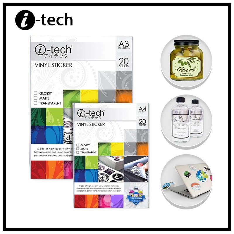 Waterproof Printable iTech Vinyl Sticker A4 20 Sheets Matte / Glossy / Transparent I-tech Brand