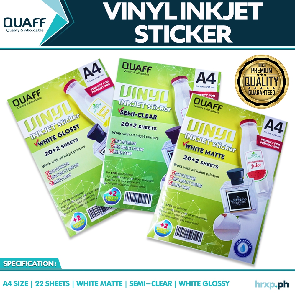 Waterproof QUAFF Vinyl Inkjet Sticker Semi Transparent / Glossy / Matte A4 Size (22 sheets / pack)