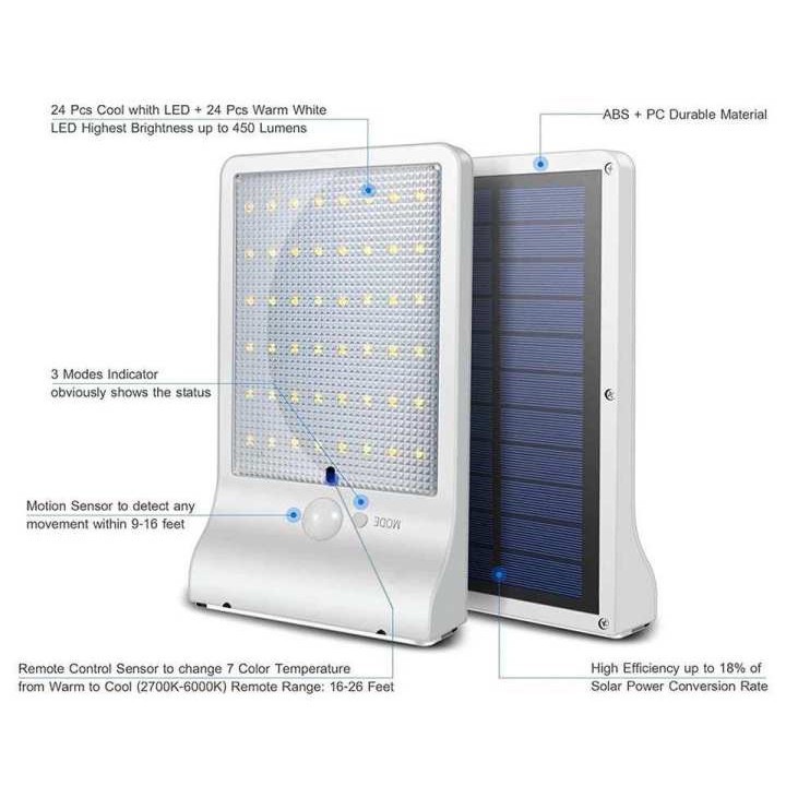 Waterproof Solar Panel Motion Sensor Light , 48 LED With rod Remote Control Dimmable Outdoor Lamp