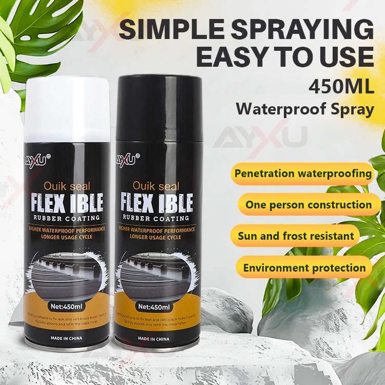 Waterproofing Spray Coating Rubber Coating Spray Repair Sealant For Roof Wall Cracks Pipes (450ML)