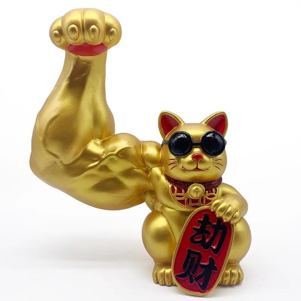 Wave Hand Cat Maneki Neko Lucky Cat Solar Waving Cats Good Luck For Car Decorations New Year Big Arm Lucky Cat Vigorously Muscle Arm fortunasp
