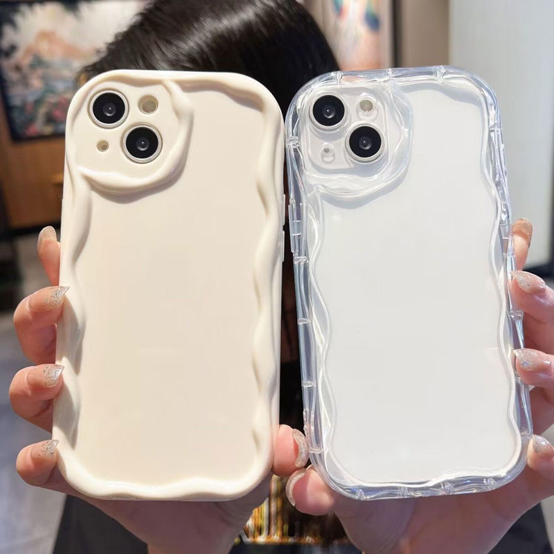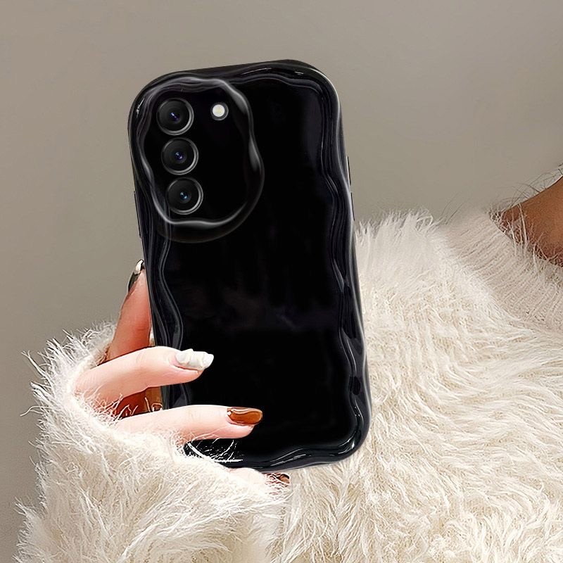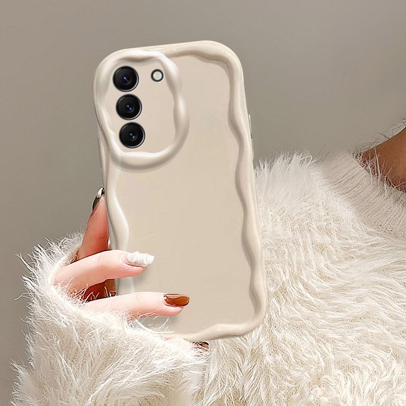 Wave Pattern Solid Color Cream Phone Case For Samsung ss Galaxy A17 A07 A16 A06 A56 A36 A26 A55 A54 A35 A34 A25 A24 A23 A15 A14 A13 A05s A05 A04s A04E A04 5G 4G 2025