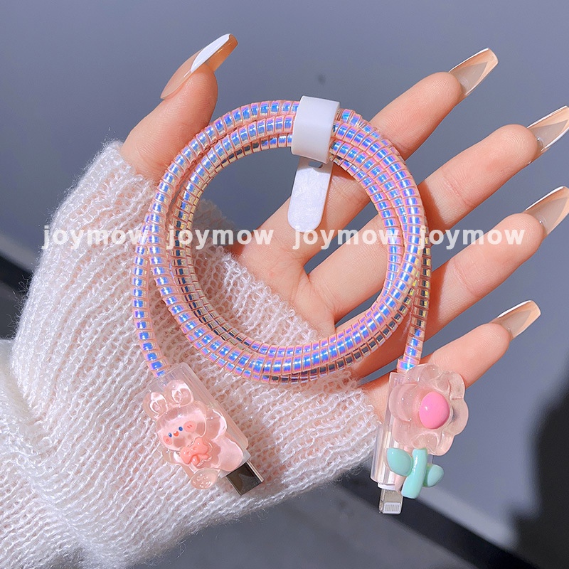 Wave flower rabbit charger protector anti-breaking dust-proof data cable protector 20w charger case for iP 14 promax/13promax/13/12promax