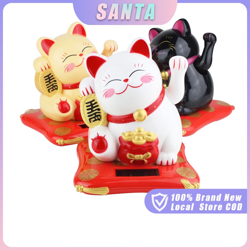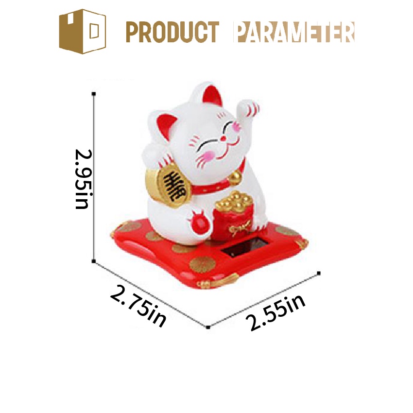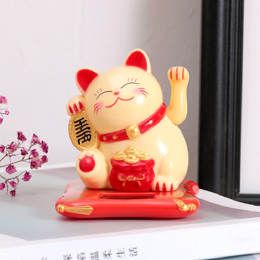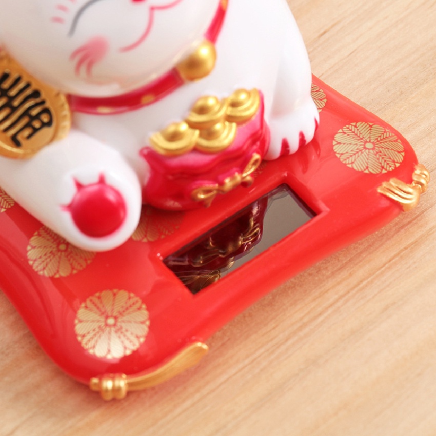 Waving Hand Lucky Cat Japanese Maneki Neko Solar Powered Welcoming Lucky for Home Office Car Decor