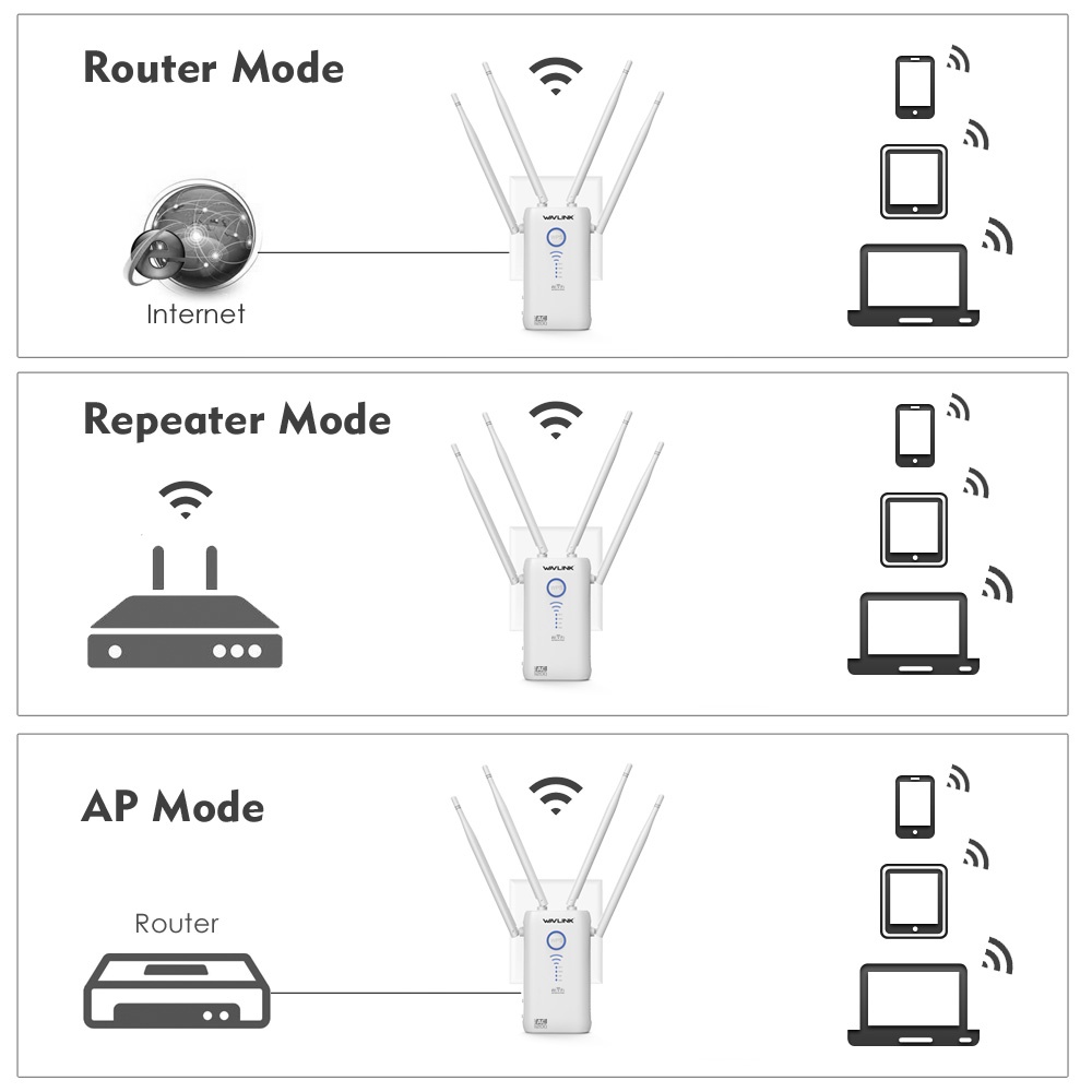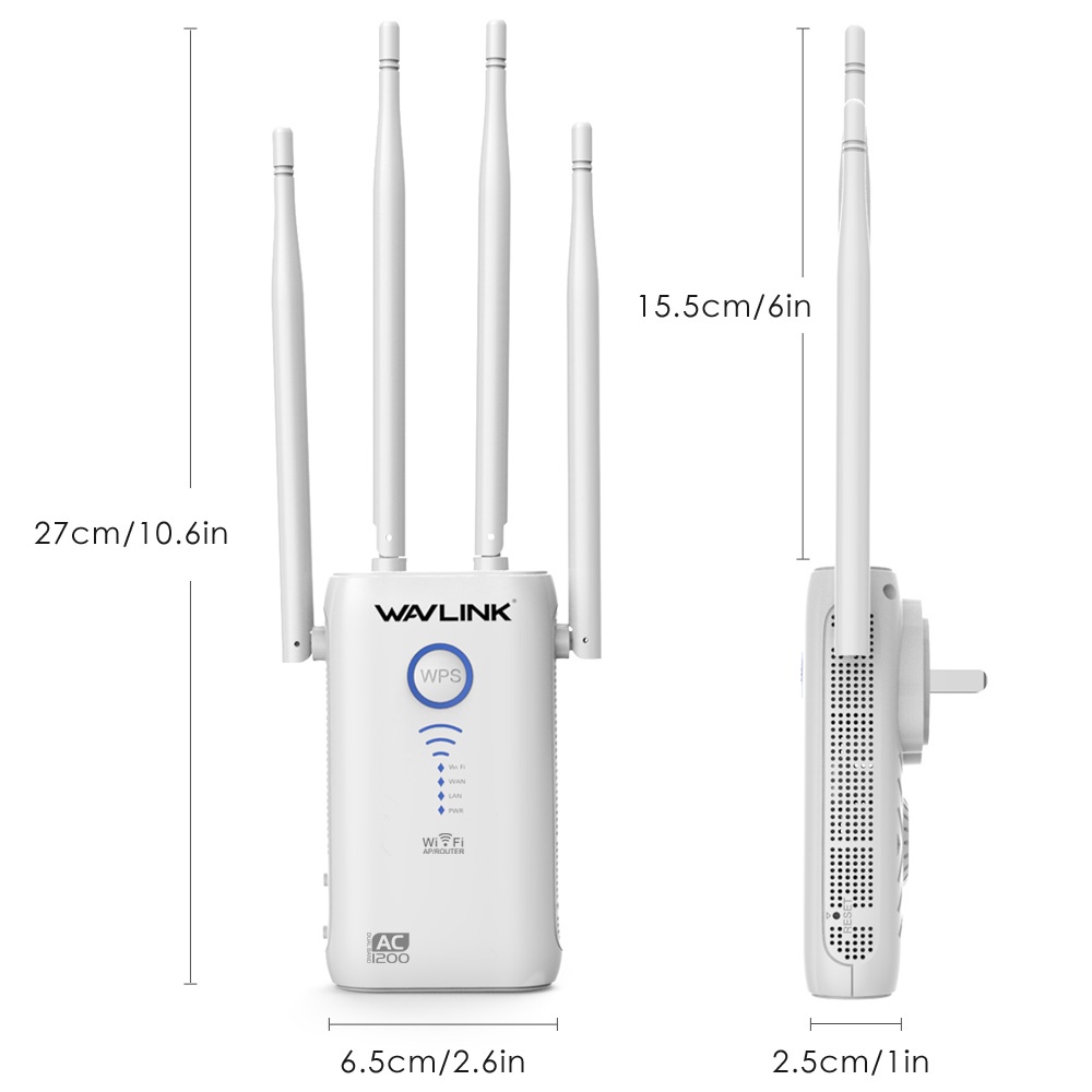 Wavlink Ac1200 Dual-Band 2.4g 5g Wireless Ap Range Extender Router With Dual Giga Lan And High Power Antennas