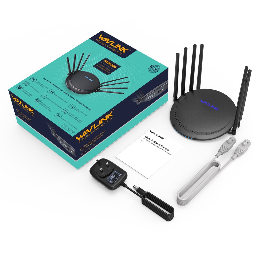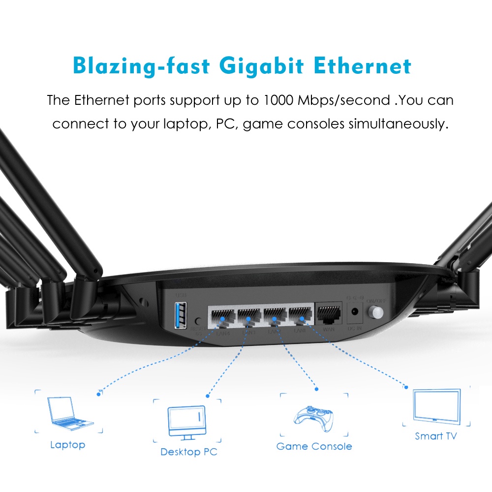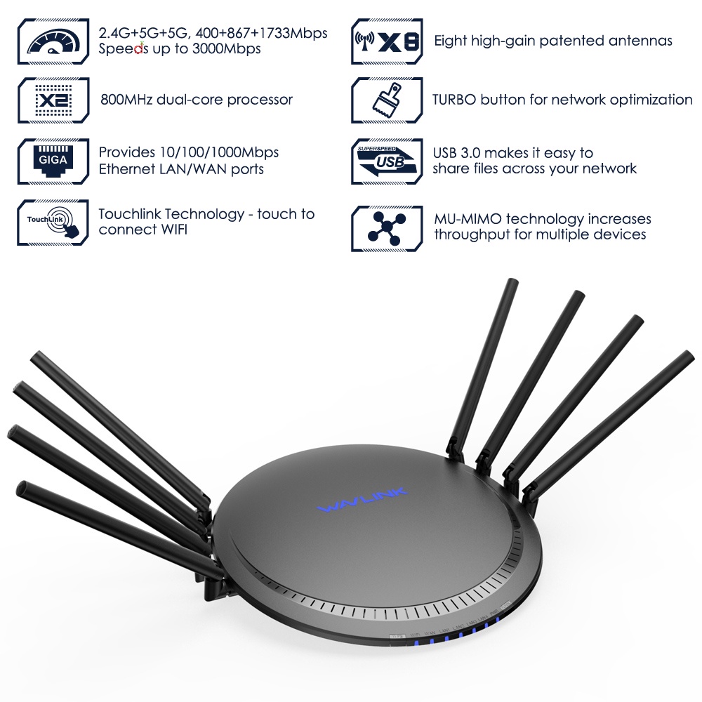 Wavlink Ac3000 Mu-Mimo Tri-Band 3000Mbps Smart Wi-Fi Gigabit Router with 8 X 5Dbi Omni Directional Antennas, 5 Ethernet Ports