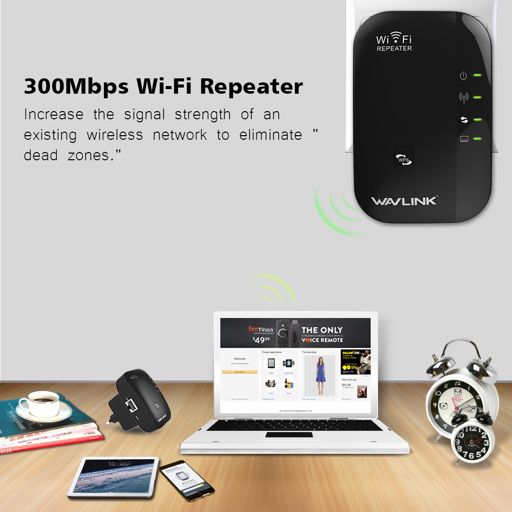 Wavlink N300 Wi-Fi Repeater Range Extender With 3dbi Internal Antennas 802.11n B G Wps Protection Fast Ethernet-Wall Plug Version