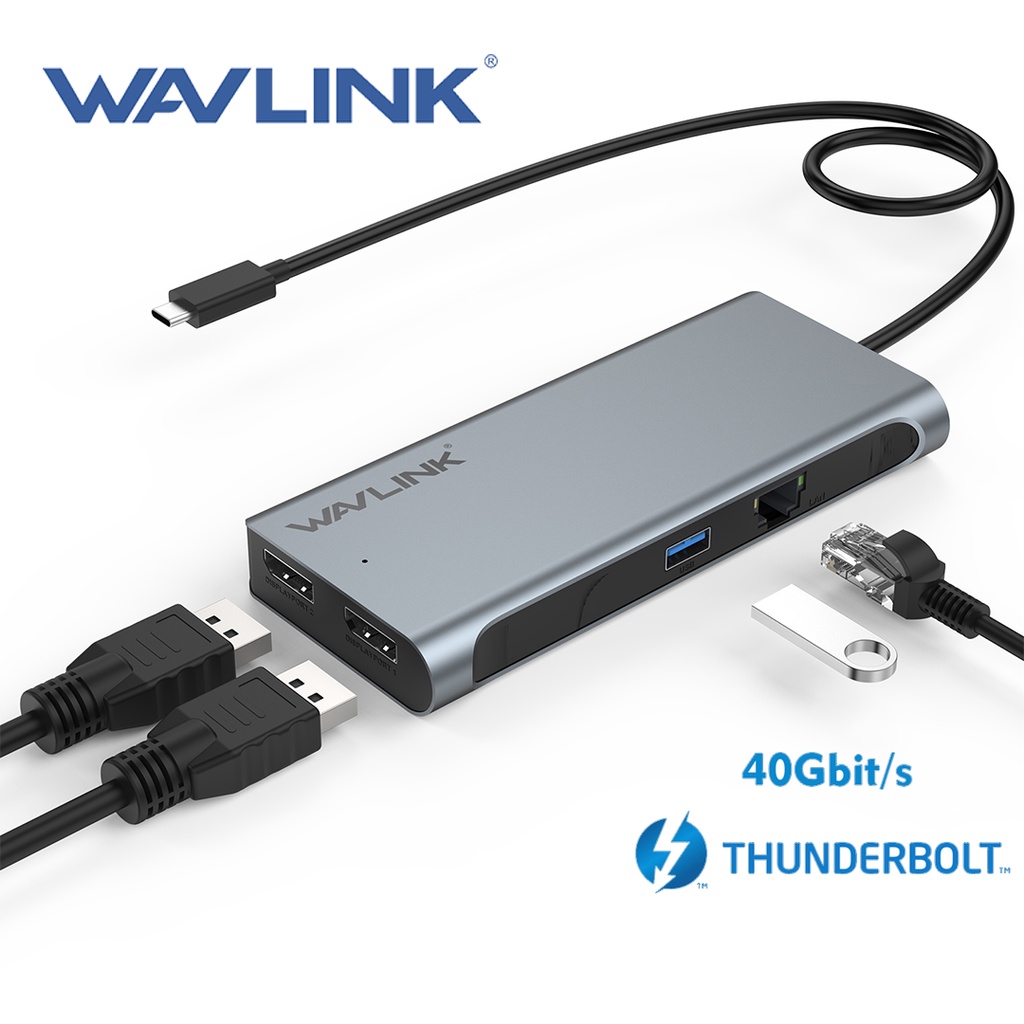 Wavlink Thunderbolt 3 4 Hub With 40gbps Speed Usb3.0 Rj45 Gigabit Ethernet HDMI Dp Display 5k Dual 4k Usb For Laptop Monitors