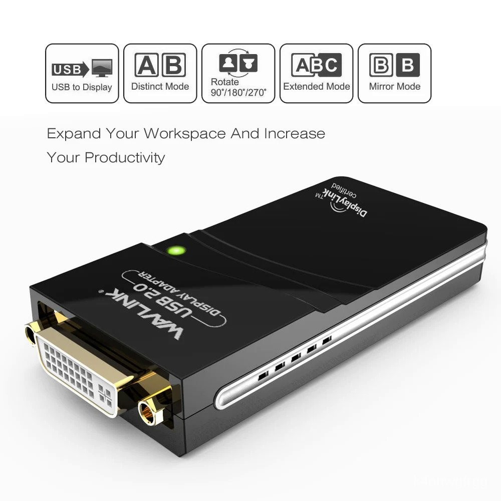 Wavlink USB 2.0 to DVI/VGA/HDMI Video Graphics Display Adapter (HDTV CRT LCD Projector) Displaylink