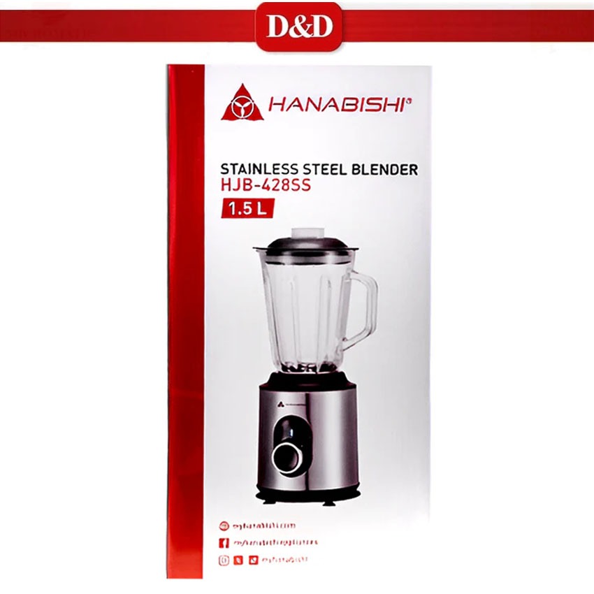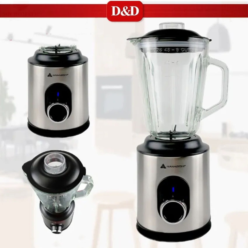 D&D HANABISHI HJB-428SS 1.5L Stainless Steel Blender Glass Jar
