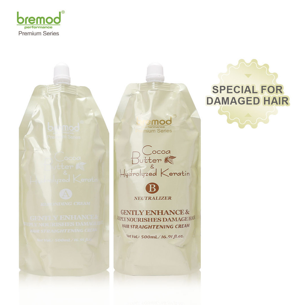 Bremod Premium Keratin Hair Straightening Rebonding Cream Cocoa Butter Hydrolyzed 2*500ml BR-T016