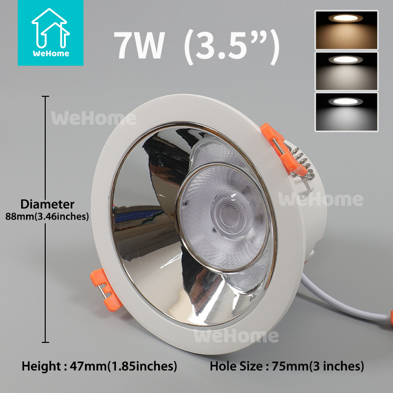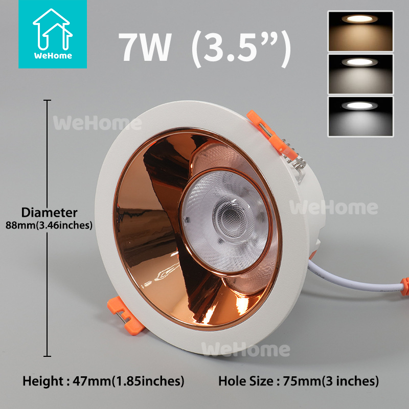 WeHome LED Anti Glare Pin Light Downlight for Ceiling Tri Colors 7Watts Slim Round Recessed 3 Colors