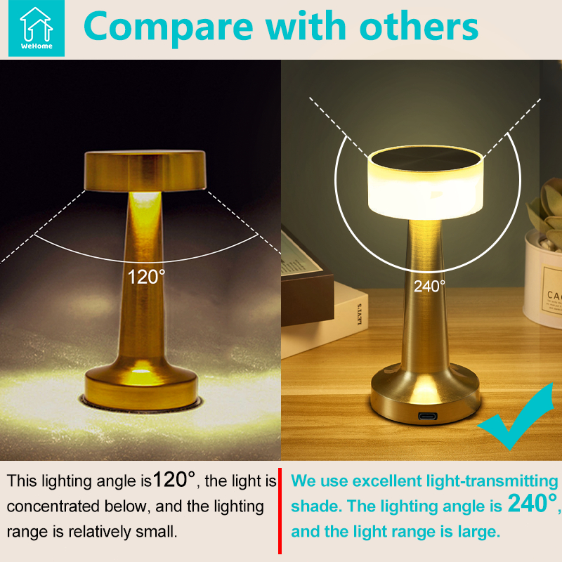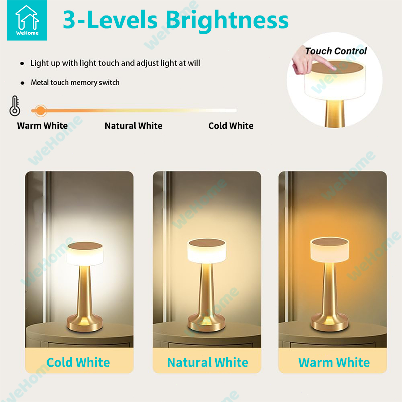 WeHome Led Touch Table Lamp Desk Light 3 color Dimmable USB Rechargeable Bar Lights for Home Decor